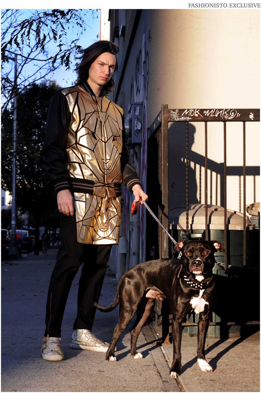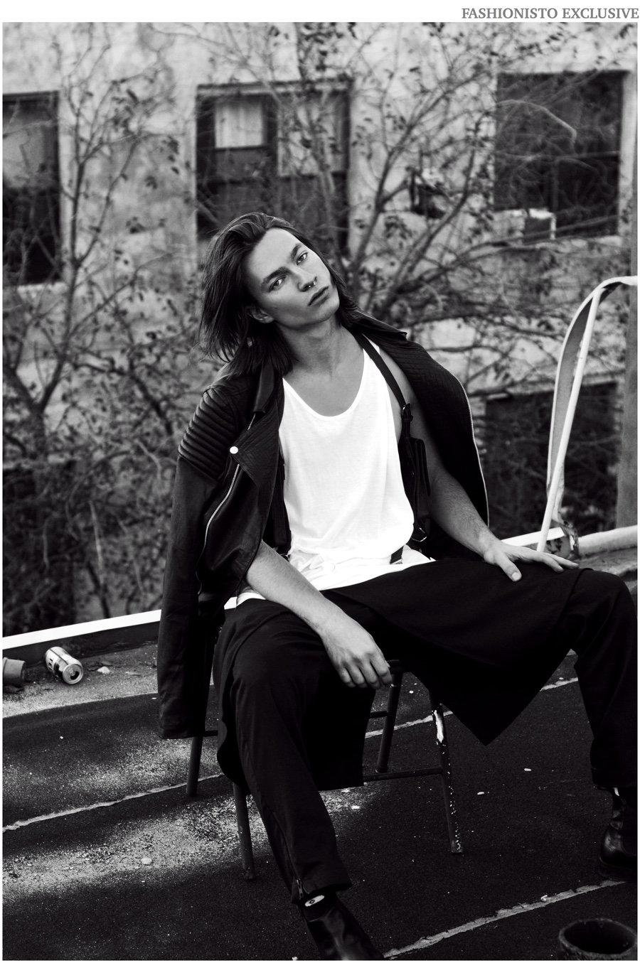 Fashion photographer Hadar connects with ADAM model up and comer Mikhail Dorfman for our most recent exclusive. Utilizing fashions from Los Angeles-based clothing label Skingraft, Mikhail easily obtains an edgy look. With phenomoneal proportions and a dark, modern aesthetic, Mikhail is captured in leather jackets, draped outerwear, slouchy bottoms and more.