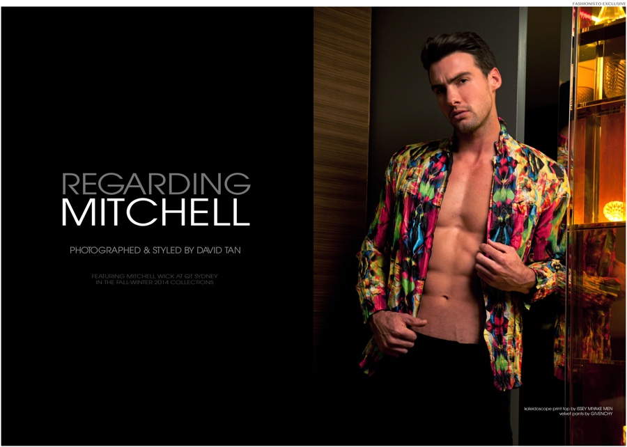 Regarding Mitchell-One of Cleo’s top 30 Most Eligible Bachelors of the Year, Chadwick Sydney model Mitchell Wick plays muse to photographer David Tan for our most recent exclusive. Shot on location at the iconic QT hotel, Mitchell is a strapping vision as he dons eclectic styles from designer fall-winter 2014 collections. Styled and photographed by Tan, Mitchell is captured in a standout, statement making styles from Dolce & Gabbana, MIHARAYASUHIRO, Issey Miyake, Comme des Garçons and more.