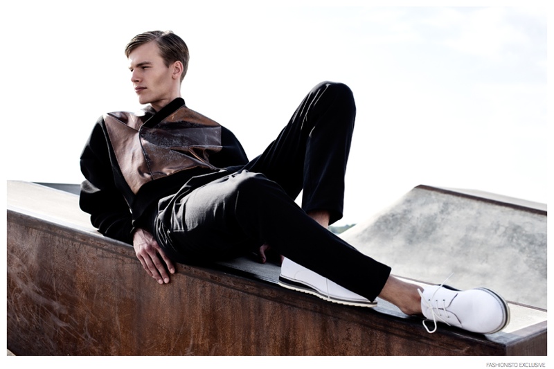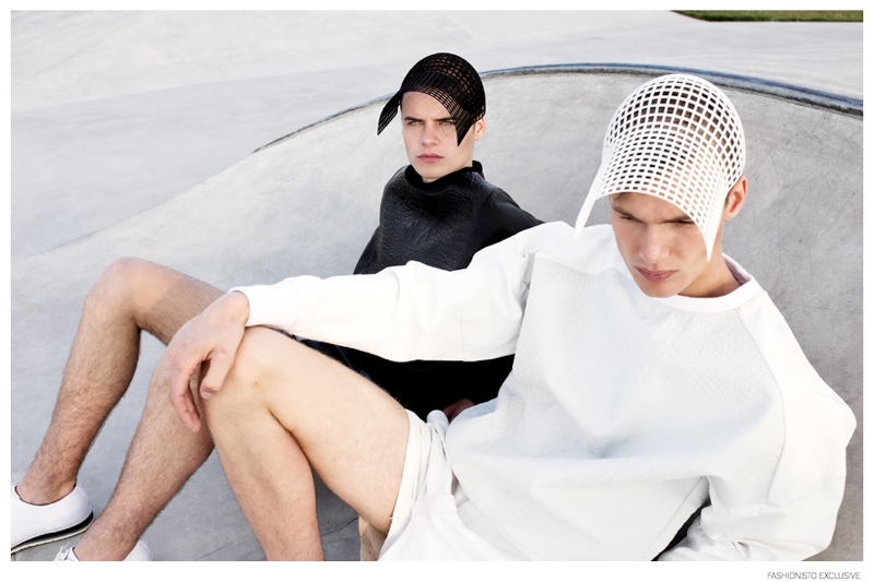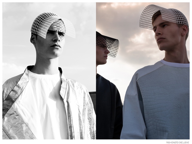 From the Moon-Photographer Liselotte Fleur and stylist Amy Kleingeld come together to ponder about what exists beyond the stars above. Imagining a story with two boys from the moon, Kleingeld finds the perfect match in the modern fashions of CHO by Sukwan Adriaanse. Posing for stunning images, models Arden and Leroy (Alpha Male Model Management) wear contemporary silhouettes dressed with metallic finishes. / Grooming by Pascale Hoogstraate.