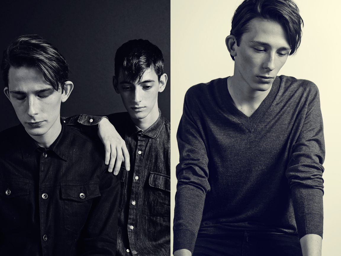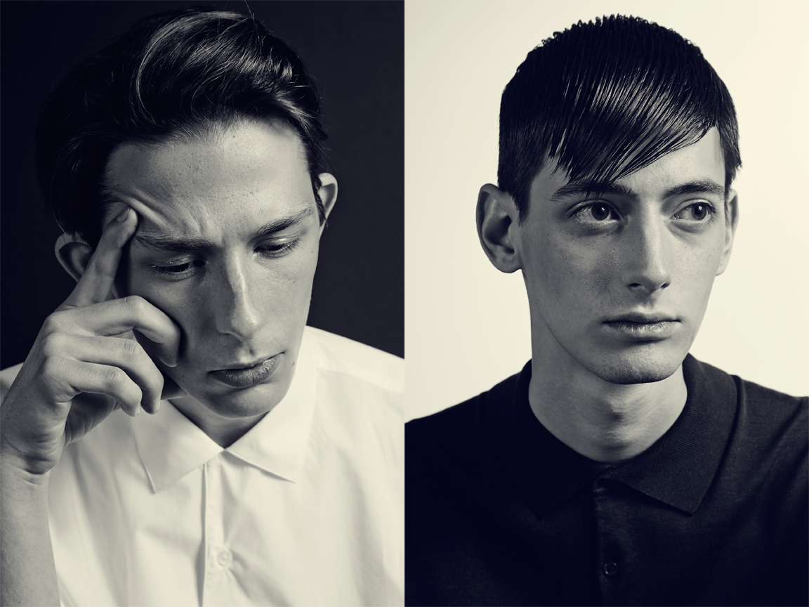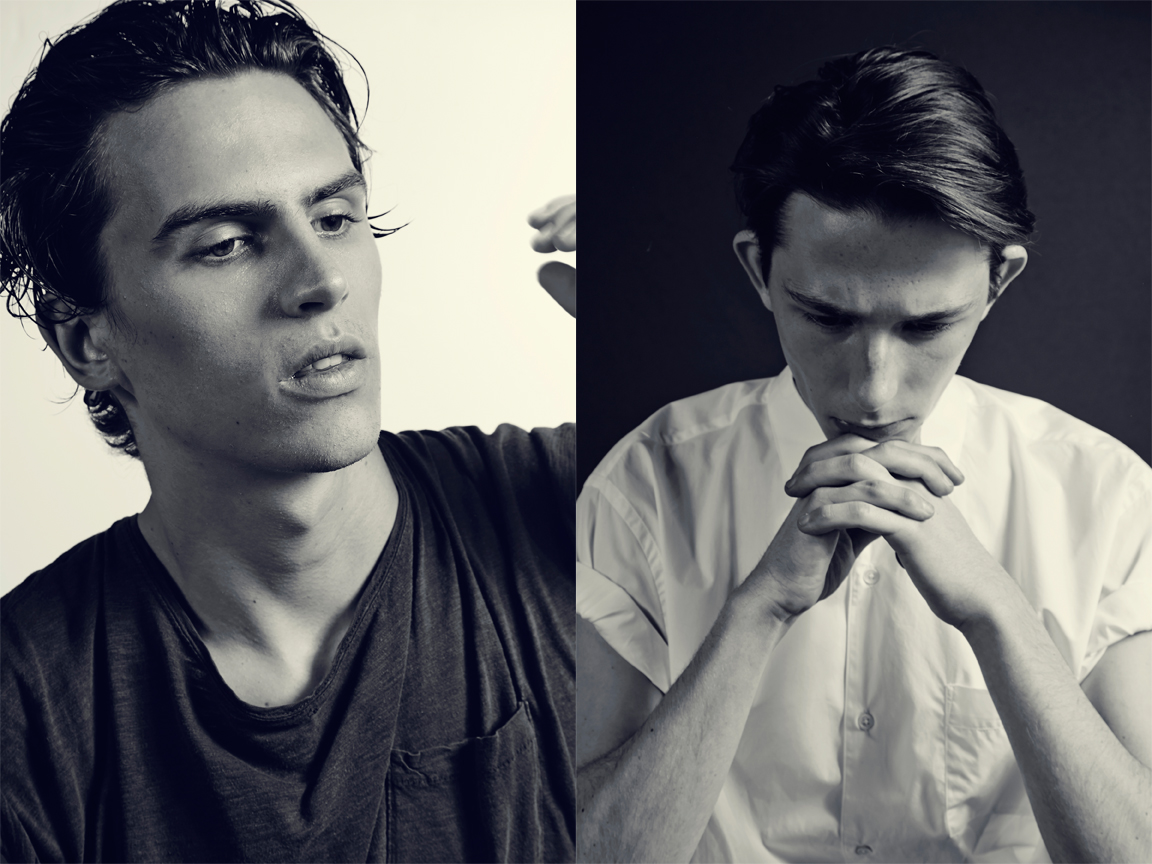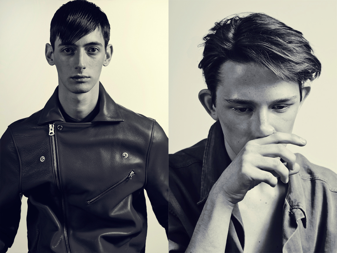 Left Lain wears t-shirt Robert Geller. Right Conrad wears shirt Acne.