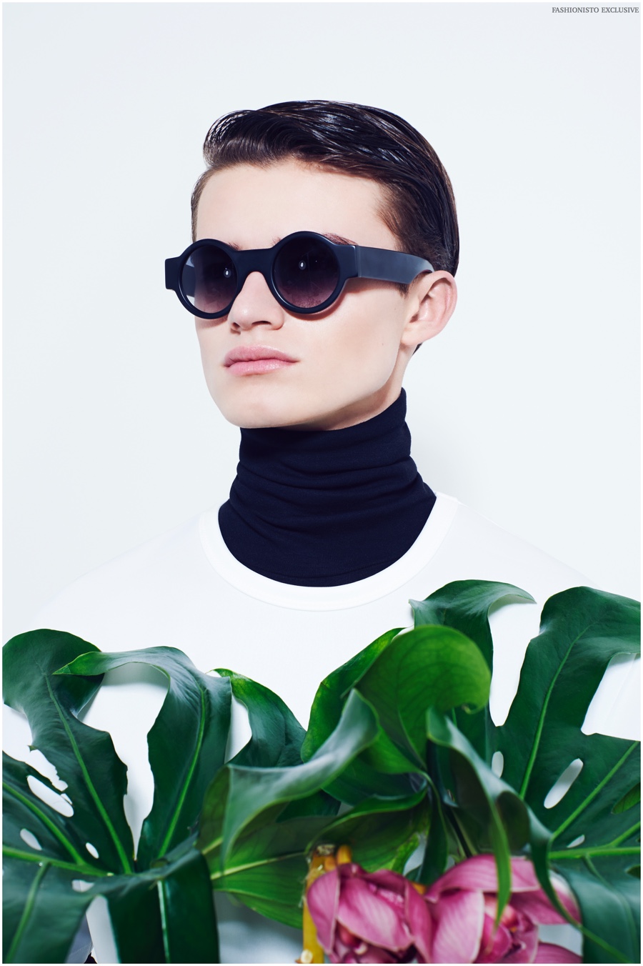 Reece wears sunglasses Black Eyewear, tee and turtleneck Topman.Pin