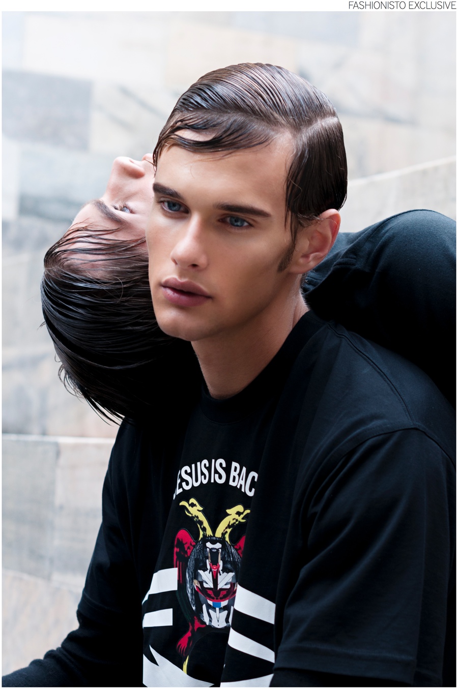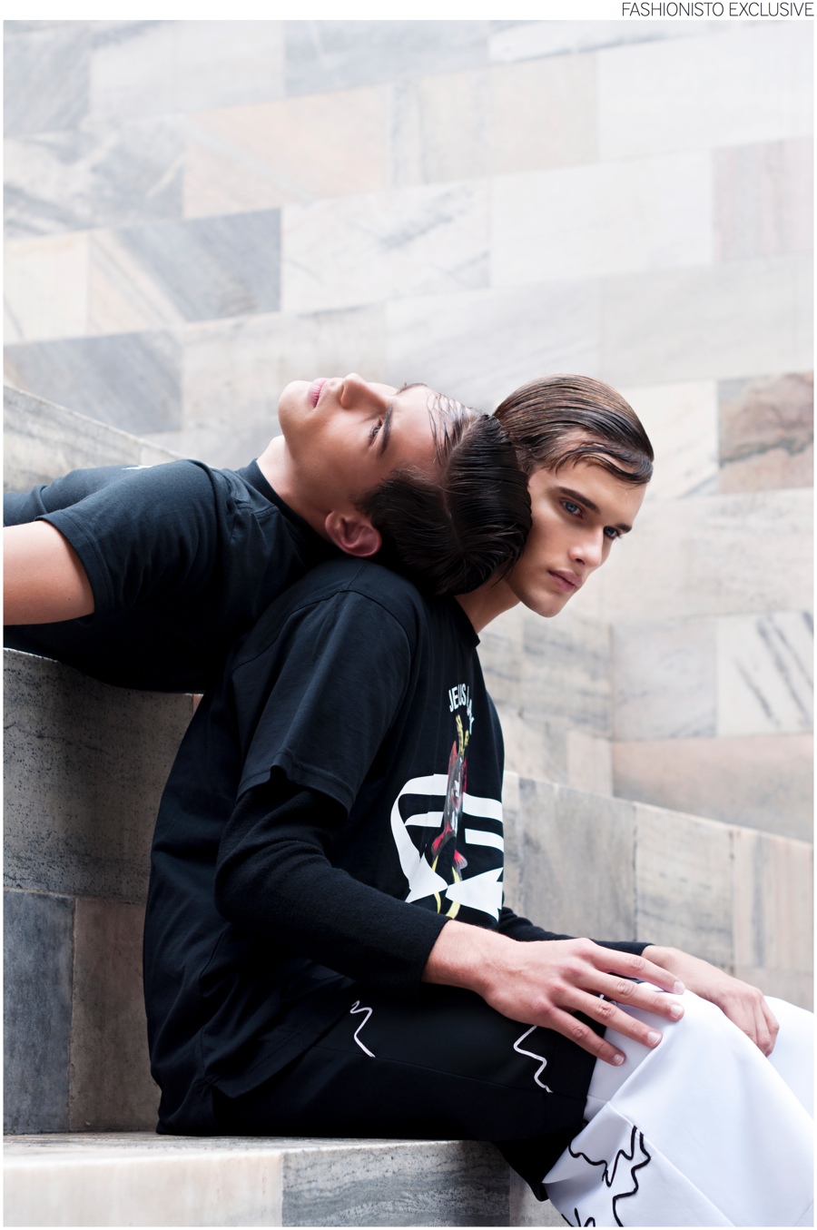 Different Twins-Physical similarities bring Riccardo Mora (Fashion Milano) and Stanislaw Bielawa (Independent) together for an exclusive lensed by photographer Simone Lorusso. Venturing outdoors for a quiet shoot, Riccardo and Stanislaw are outfitted by stylists Maddalena Fiumefreddo and Edoardo Caniglia. Combinging efforts, Fiumefreddo and Caniglia pull together pieces from Dior Homme, Neil Barrett, Prada and more for a minimal wardrobe with modern finesse. / Photo assistance by Clara Melchiorre. Grooming by Amedeo Marcolungo.