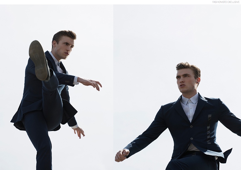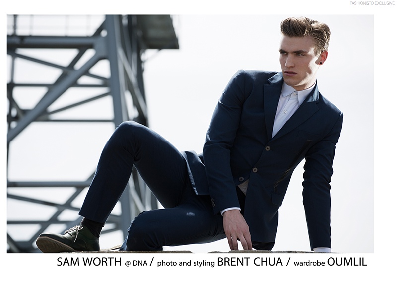 Introducing Sam-Returning to our pages with a new promising face to introduce, New York-based photographer Brent Chua shoots DNA model Sam Worth. Outfitted in the sleek modern designs of Oumlil, Sam is captured outdoors as he shows Chua his best moves, because after all, a model’s relationship with the camera is like a grand dance.