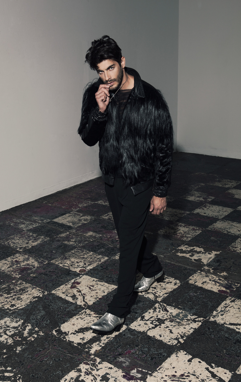 Tao wears shirt Saint Laurent by Hedi Slimane, boots Landeros New York, belt Neiman Marcus, ring Heidi Gardner, blazer and pants Ninh Collection.