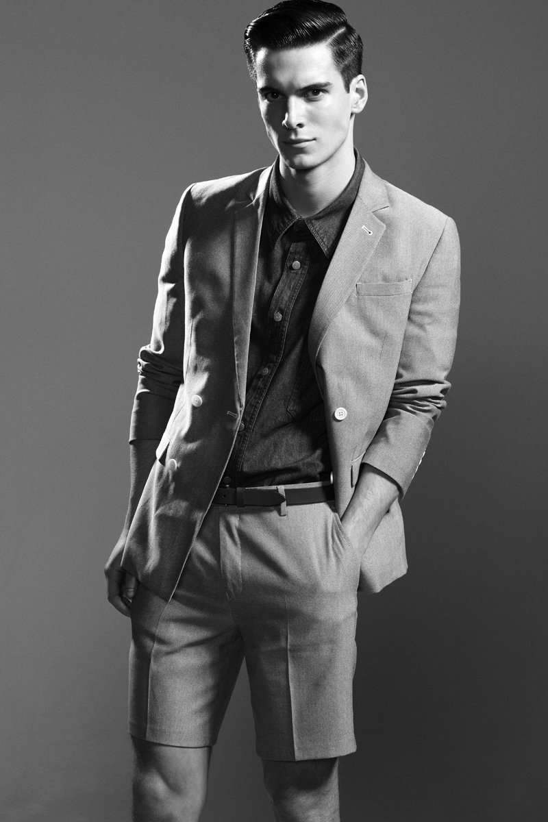 Viktor wears blazer ASOS, jeans and chambray shirt American Apparel.