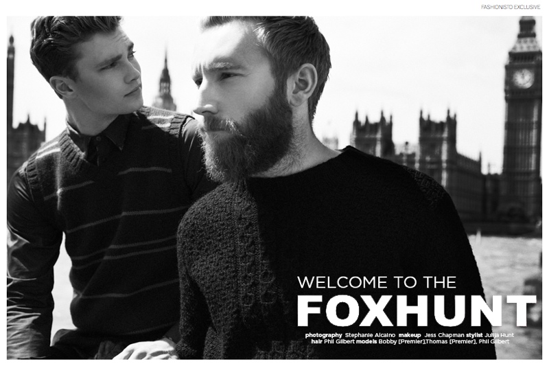 Photographer Stephanie Alcaino steps into fall with a new story produced in collaboration with stylist and Foxhunt designer Julija Hunt. Dressed for an essential autumn, Premier model Thomas come together with Phil Gilbert, sporing classic menswear ensembles. From Foxhunt knitwear and Coeur shirts to Duchamp London tailoring, the models bring smart sentiments to the timeless shoot. / Hair by Phil Gilbert. Makeup by Jess Chapman.
