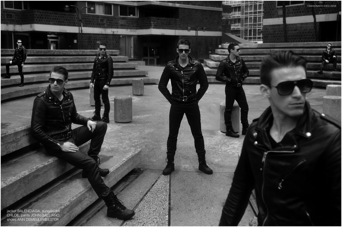Photographer Bell Soto delivers another fun project as he connects with Wilhelmina New York model William McLarnon for a shoot and video inspired by The Terminator. Donning a slick wardrobe of leather jackets and slim-cut pants, William is outfitted by stylist Kike Pajares, wearing pieces from Diesel Black Gold, Balenciaga and more. / Art direction by Glenn Johnson. Grooming by Gary Requejo (FactorArtists).