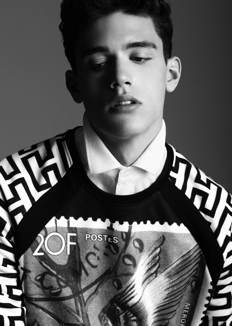 Dreamer Habits–Sight Management model Xavi Serrano is the latest face in the spotlight as he connects with photographer Edwin S Freyer for our latest exclusive. Shot in studio, Xavi poses for dynamic black & white photos as he models spring essentials styled by Marta Paris. From the casual t-shirt to a graphic knit, Xavi charms in relaxed images.
