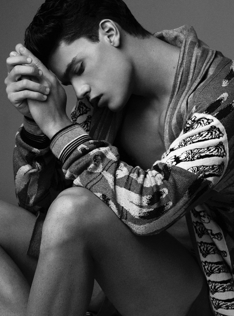 Xavi wears printed sweater Bernhard Willhelm and underwear Josep Abril.