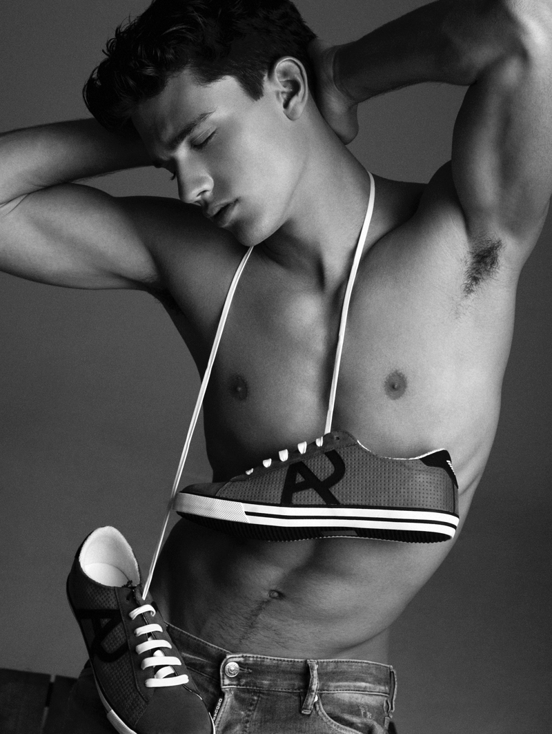 Xavi wears shoes Armani Jeans from Llenas and jeans Dsquared2 from Zona Eleven.