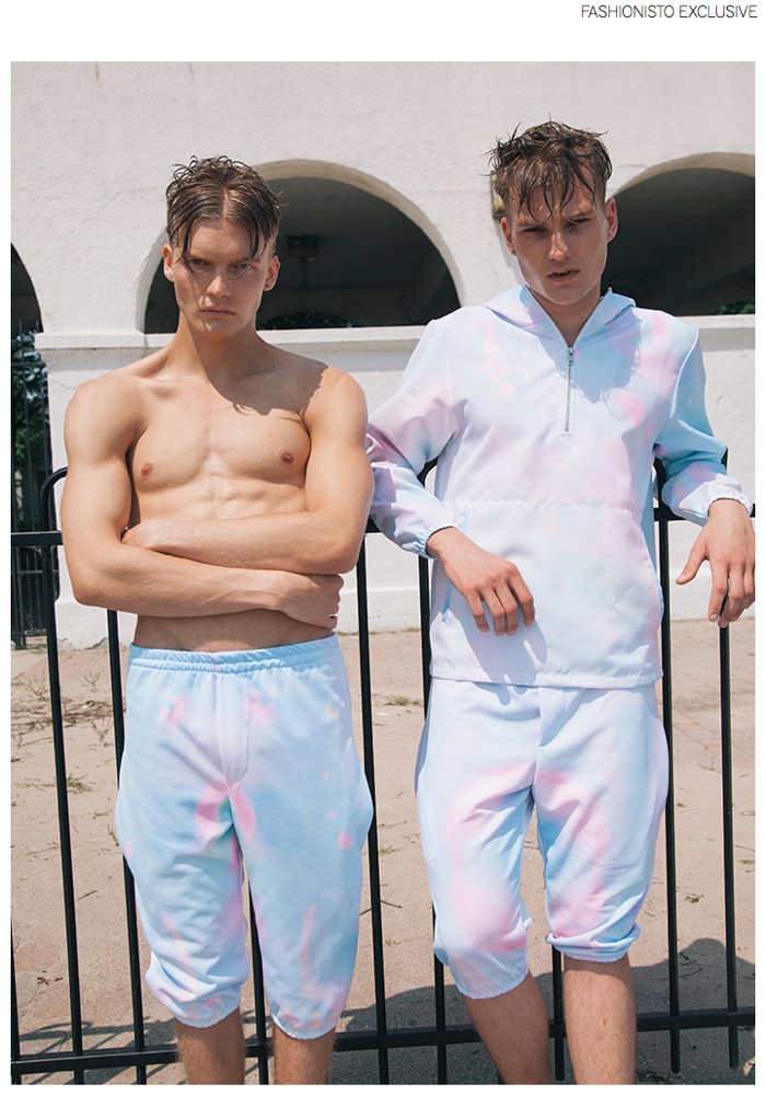 Photographer Wally Sparks and stylist Bobby Bowen team up for a new story in which the pair serve up a fashion editorial with a cherished 90s nostalgia. Acting as friends taking in the last days of summer, Zak (Spot 6 Management) and Cameron (Sutherland) connect in colorful, relaxed fashions that exude a certain ease and young attitude. / Style assistance by Romany Williams. Grooming by Claudine Baltazar (PlutinoGroup). Special thanks to Parloque and Working Title.