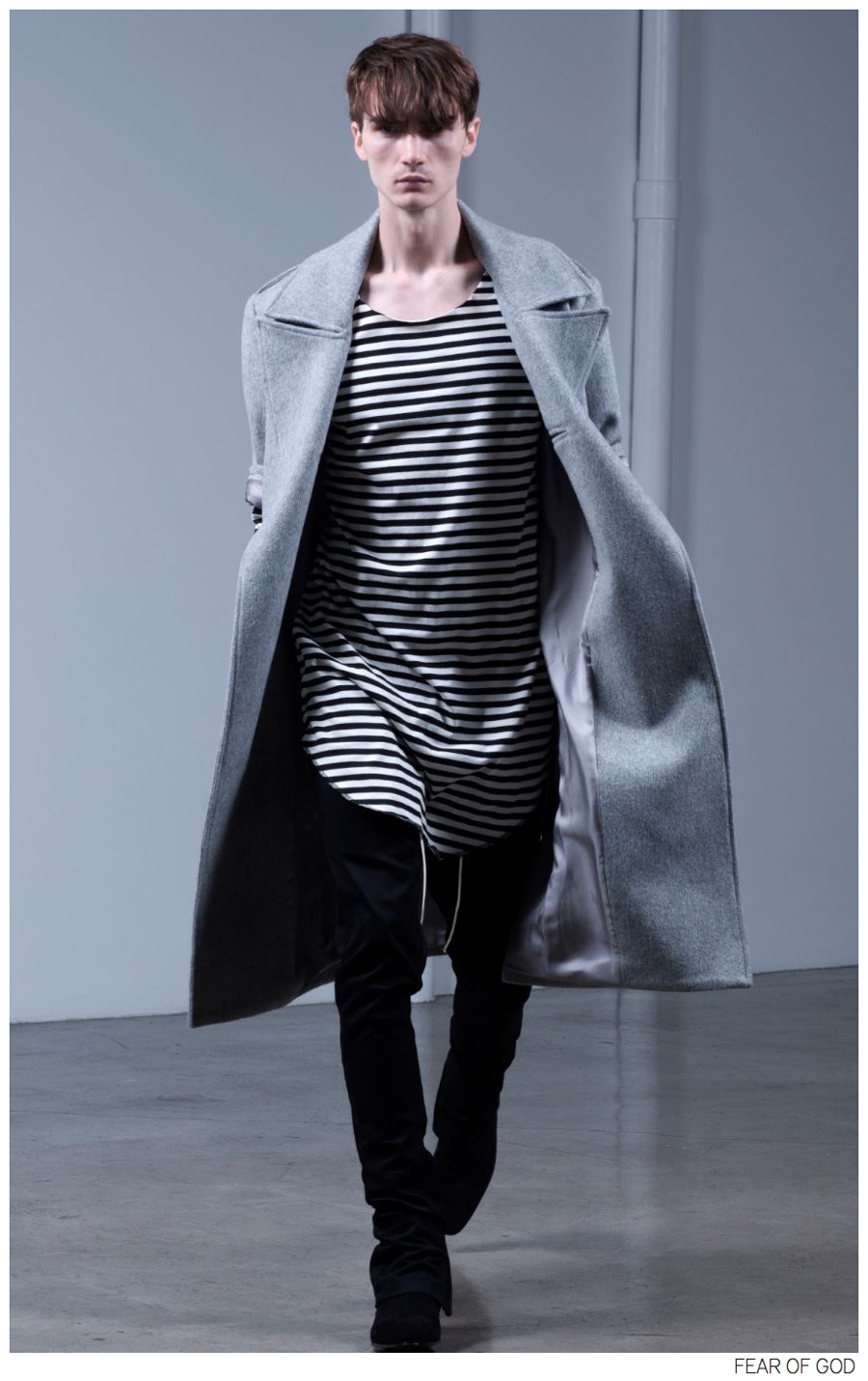Reflecting the young urban cool of Los Angeles, local fashion brand Fear of God presents its third collection with the help of model Gryphon O’Shea. Cigarette thin pants aim for a lean fit, while coats, hooded jackets and casual tops are layered for a demonstration of ideal varying proportions. Taking up volume with outerwear, coats are playful, boasting halved sleeves and oversized tailoring. Mixed with flannel and striped tees, Fear of God’s wardrobe channels modern grunge elements and easily pleases stylistically.