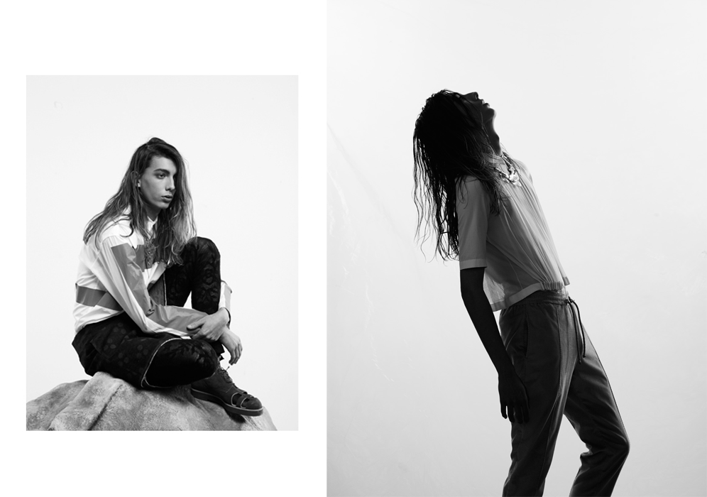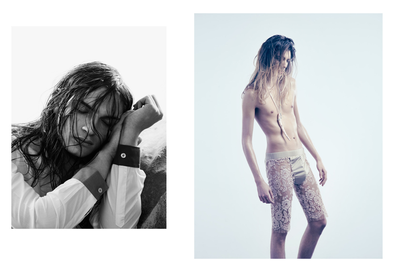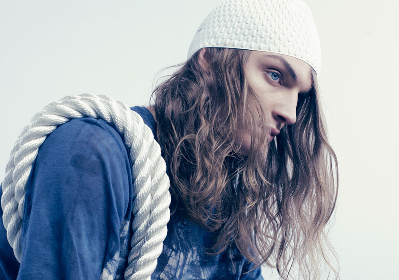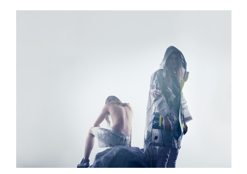 London Calling–Photographer Pelle Crépin lensed models Felix Branch, George Watson and Stan Rapley for the latest update from Grit. Stylist Larissa De Filippo picked some of the hottest new brands in the London menswear scenario to create a story built around an eccentric wardrobe that includes immaculate lace, transparent techno fabrics and unusual proportions and volumes.