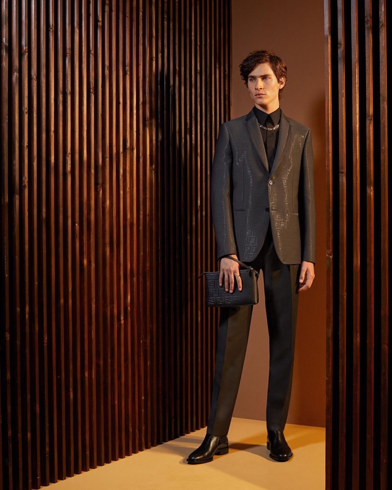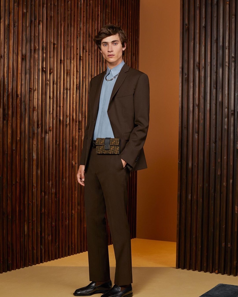 Ahead of the arrival of its spring-summer 2020 collection, Fendi transitions into the new season with its resort lineup. The fashion house showcases a selection of looks with an outing featuring models Liam Kelly and Yang Hao. No stranger to neutral tones, Fendi’s menswear embraces shades of brown and tan for an effortless approach to luxurious wardrobe essentials. Jackets are in the spotlight with key pieces like a blouson jacket and parka. Meanwhile, smart collared shirts join denim and pleated pants. Fendi’s leather bags are well represented with the label’s signature Baguette bag and more.
