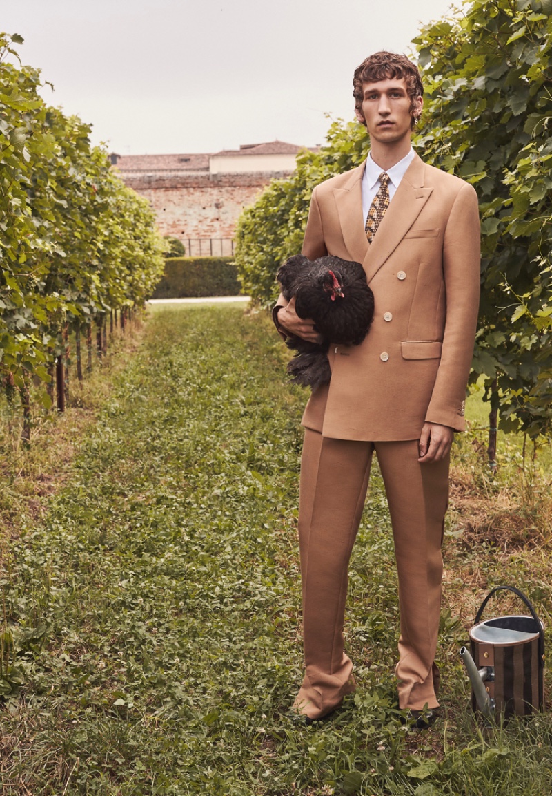 Etienne de Testa reunites with Fendi for its spring-summer 2020 campaign. The model takes to a garden setting that captures the spirit of the fashion house’s charming new collection. Photographed by Luca Guadagnino, model Romaine Dixon joins Etienne. Styled by Julian Ganio, the models don a mix of elegant tailoring and sportswear that takes its inspiration from Fendi’s stylish idea of a gardner. Guadagnino also directs a beautiful video for the season.