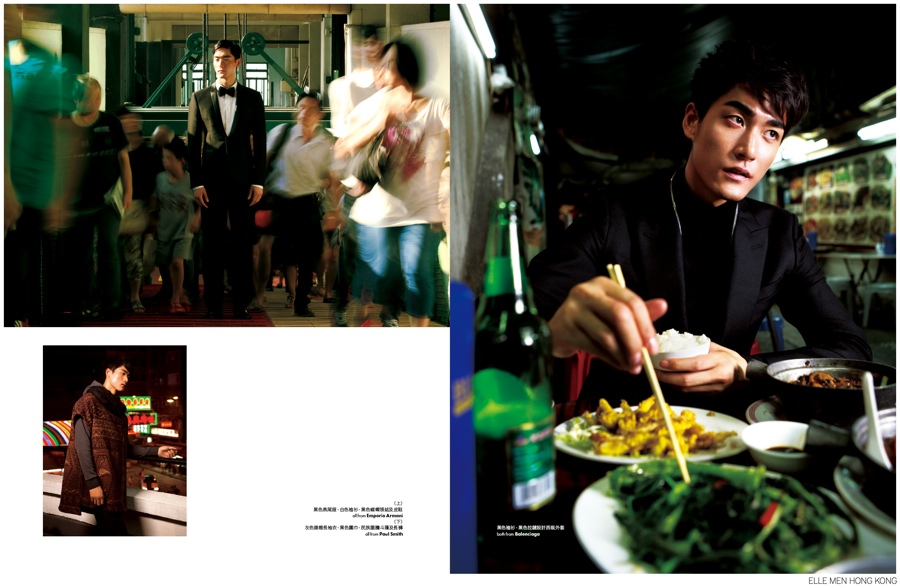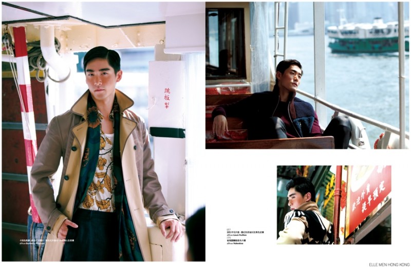 Oriental Rising-Model Feng Xiang shows us a decadent look at fall, starring in a new fashion editorial for the September 2014 issue of Elle Men Hong Kong. Photographed by Matt Hui (SugarSugar Production), Feng is shot on location in Hong Kong, picking up on the juxtaposition of rich history and modernity. Styled by Elle Men fashion director Samuel Lee, Feng wears bold fall fashions from Dior Homme, Prada, Versace and more.