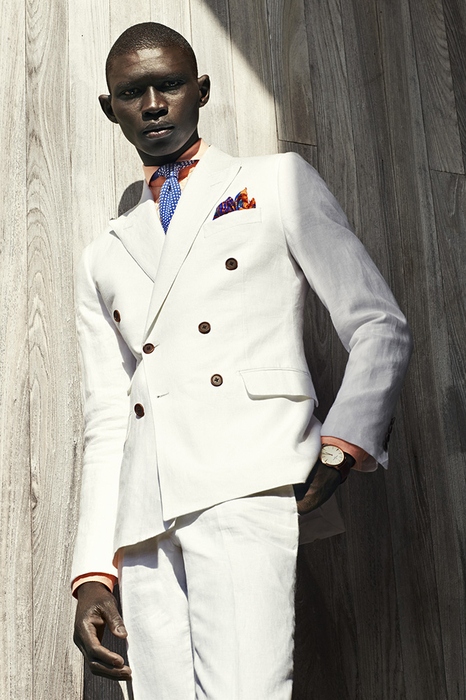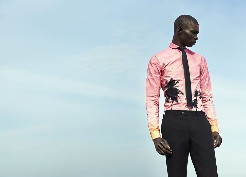 Eton of Sweden Fall/Winter 2014 Campaign-Photographed outdoors by Tomas Lundkvist, model Fernando Cabral fronts Eton of Sweden’s fall/winter 2014 campaign. Dressed to impress in the label’s spring offering, the Fusion model dons a selection of sharp suits, available in a color palette which plays with timeless nuances and vibrant rich hues. Unveiling an unexpected exotic vibe, Fernando wears playful printed tapered shirts, embellished with an evocative summer sunset in delicate sorbet tones.