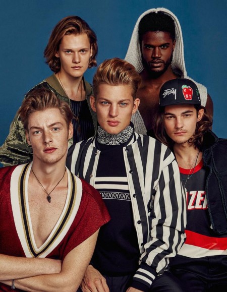 Photographer Shxpir and stylist Aeri Yun join creative forces for quite the fashion editorial from FHM Collections China. Finding inspiration in the pop phenomena that is boy bands, Yun revisits eras, dating back to the 1960s for a fun, nostalgic outing. Creating their own stylish boy band, models Roberto Sipos, Ryan Keating, Sebastian Sauve, Minkah Davidson and Peter Raven Maben come together for a memorable story.