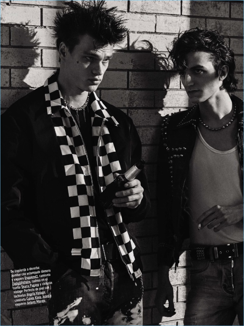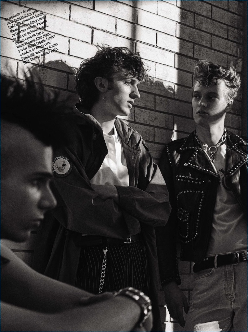 PinFilip Hrivnak, Jacopo Olmo, Leonardo Gaist and Thom star in a punk-inspired fashion editorial for GQ España.