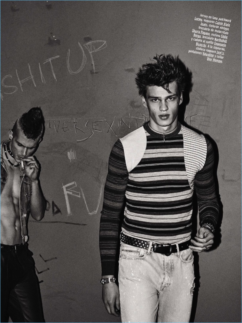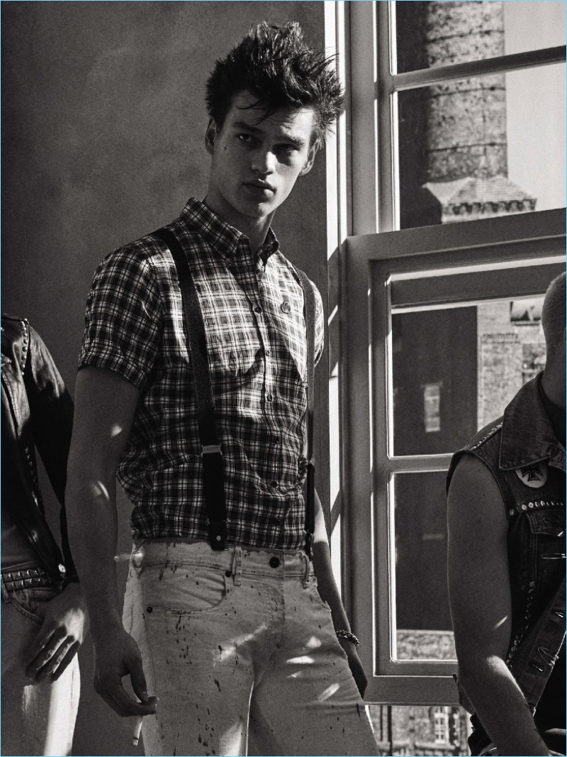 Stylist Miguel Arnau brings a rebellious edge to the pages of GQ España. Arnau collaborates with photographer Giampaolo Sgura for the magazine’s April 2017 issue. Punk is alive and well as model Filip Hrivnak takes up the starring role. Sporting fashions from the likes of Dior Homme, Filip joins a cast, which includes Jacopo Olmo, Leonardo Gaist, and Thom.