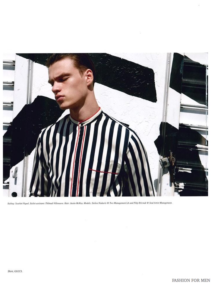 Following a nude beauty shoot, Versace face Filip Hrivnak reunites with photographer Milan Vukmirovic in another Fashion For Men story. Outfitted in striped fashions from AMI, Gucci and more, Filip packs a graphic punch in the wardrobe department.