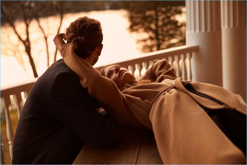 Couple Sara Blomqvist and Jeremy Young embrace for Filippa K’s fall-winter 2018 campaign.