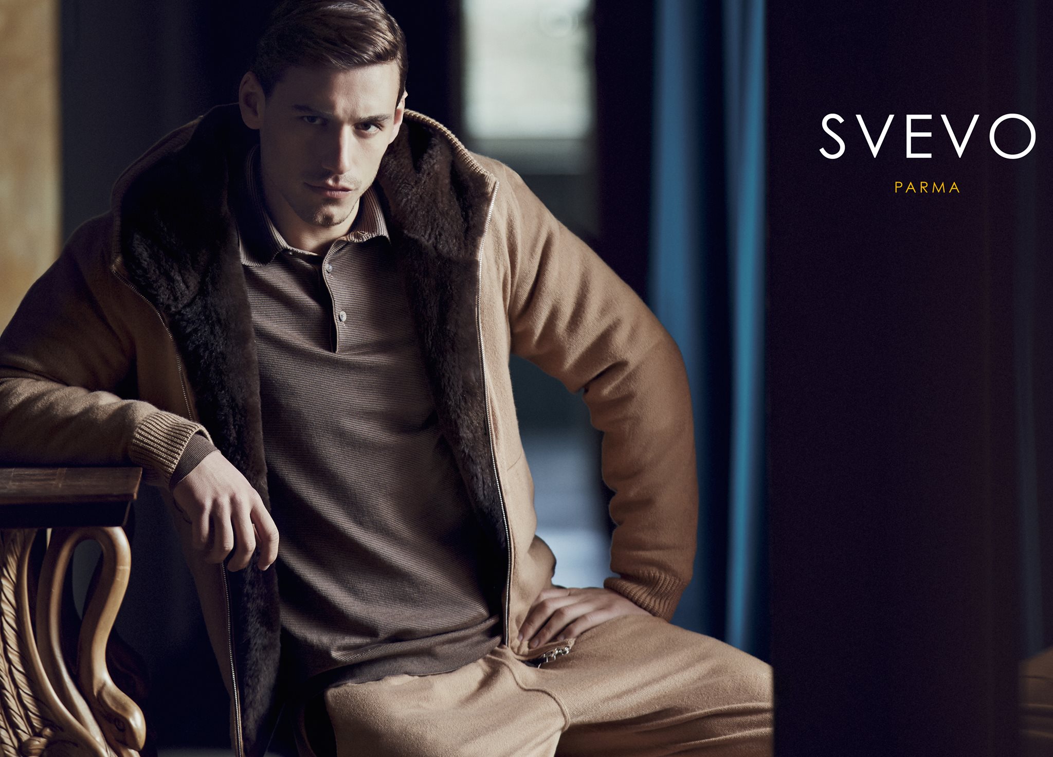 Svevo Parma Fall/Winter 2014 Campaign–With his hair slicked back, Argentinian model Mariano Ontañon reunites with Italian luxury knitwear label Svevo Parma to star in the brand’s fall/winter 2014 campaign. After posing in a creamy tinted setting for the summer season, Mariano returns for the fall ads embodying a more mysterious man, donning some of the brand’s standout pieces, which combine rich colors, a great fit and luxury materials. Mariano also stars in Dolce & Gabbana’s fall/winter 2014 menswear campaign.