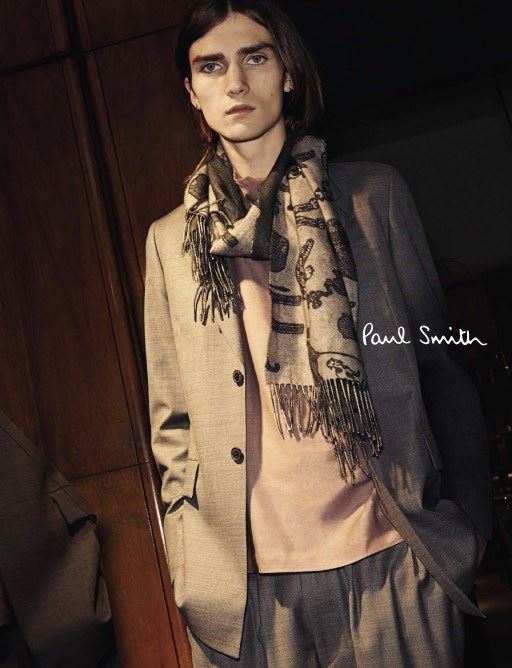 Paul Smith Fall/Winter 2014 Campaign-Photographed by the designer himself, model Gryphon O’Shea stars in Paul Smith’s fall/winter 2014 campaign. For a moody image, Gryphon is pictured in a relaxed single-breasted suit, complete with a casual top and printed scarf. For more relaxed styles in preparation of a chic fall, view our review of Paul Smith’s fall/winter 2014 menswear collection.