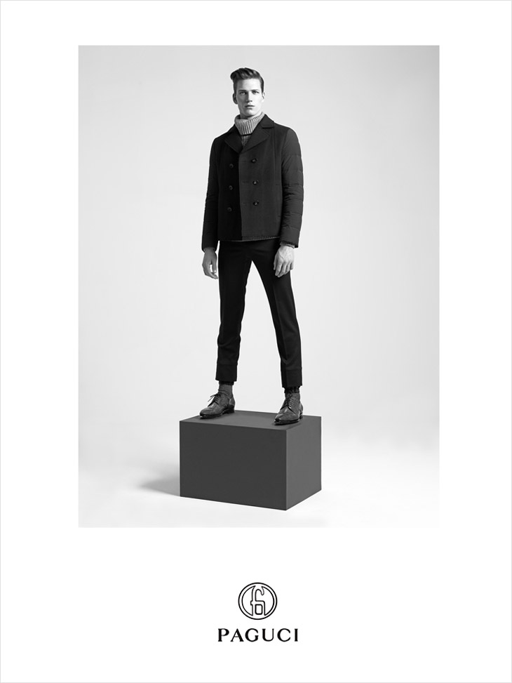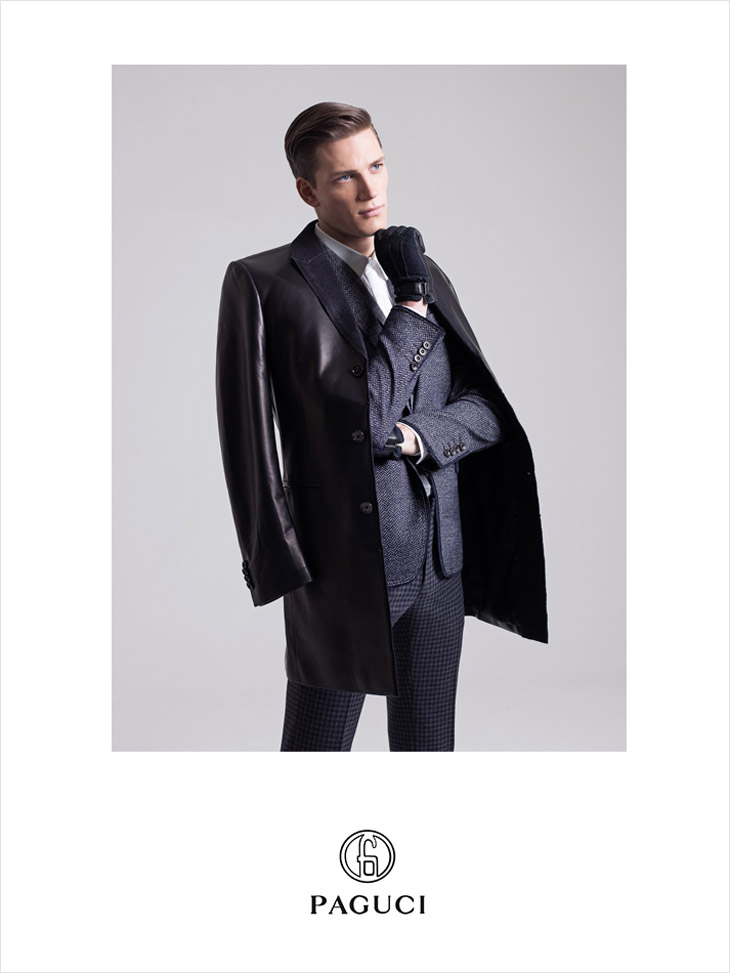 What’s Next?–Photographer Zeb Daemen shoots Paguci’s fall/winter 2013 campaign, featuring model Florian Van Bael, styled by Six Lee. Captured in a bare studio, Florian models the brand’s latest designs, driving our attention to the contemporary and appealing numbers he’s wearing. Clad in bold black leather coats or donning classic knitwear pieces or more tailored suits, Florian gives us a little preview on how to look fashionable and elegant at the same time for next autumn. / Grooming by Rudi Cremers.