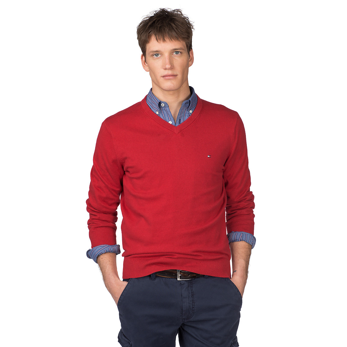 Florian Gets Casual-Model Florian Van Bael is back in the studio to unveil a selection of casual fall styles included in Tommy Hilfiger’s fall/winter 2014 collection. Donning the classic v-neck sweater in a rich palette of colors that range from sandy tones to gray hues to more vivid vibrant red nuances, Florian also embraces a sleek style, wearing the brand’s casual shirts of the season, paired with washed jeans or ultra-casual chinos in neutral tones or deep navy blue hues. From classic checks to luminous plain colors, including geometric micro-patterns, Hilfiger’s fall shirts are designed to highlight the silhouette, thanks to their svelte proportions, but also ensuring the maximum comfort, the one that can be found in the label’s newest knits, that combine a classic design with soft fabrics.