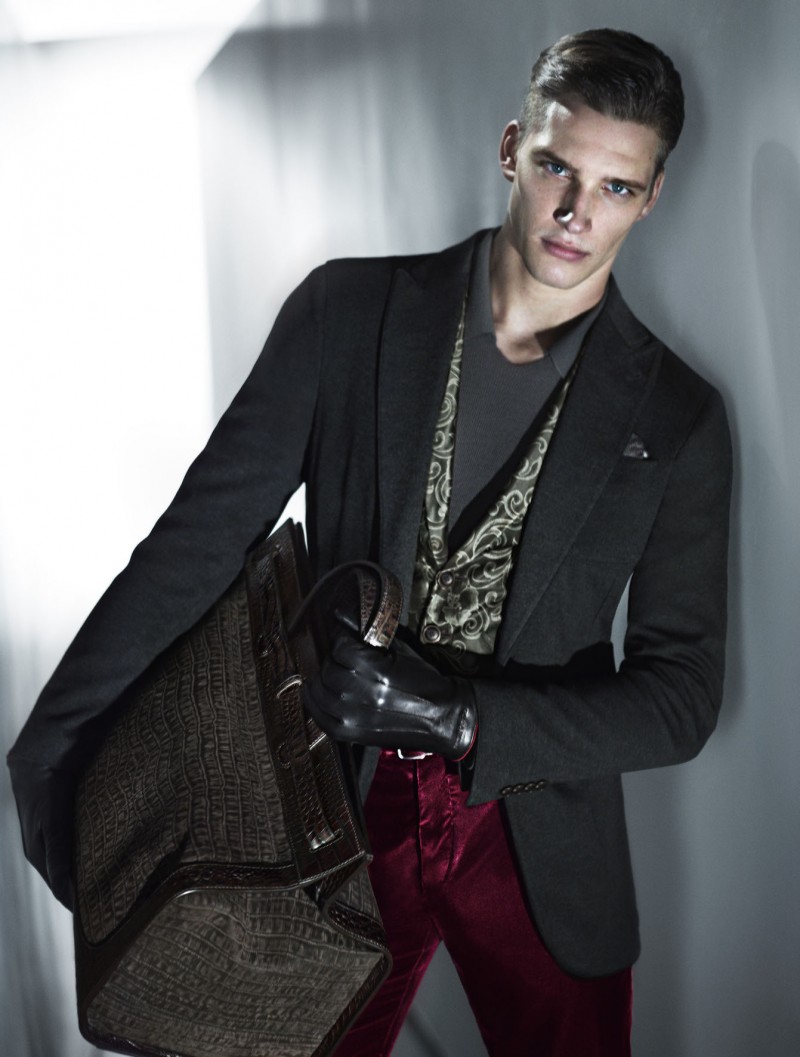 Armani’s New Face–The tireless Mert & Marcus are once more on board with Italian fashion house Giorgio Armani to shoot the brand’s fall/winter 2013 campaign, starring WhyNot model Florian Van Bael. In the first promotional image released by the brand, we can instantly feel the mood of the new advertisements, that combine a vintage inspired vibe with a contemporary appeal, emphasizing the timeless allure of the luxury designs Florian is wearing.