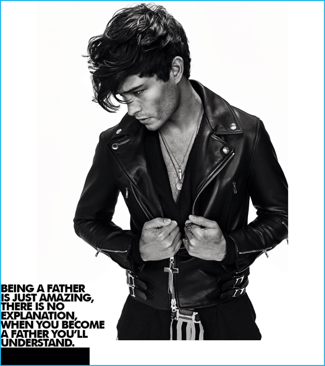 Photographed by Jean-Claude Lussier, Brazilian model Francisco Lachowski covers the most recent issue of Dress to Kill Men. Embracing denim, leather and other cool fashionable trademarks, Francisco is styled by Jay Forest. Ahead of Father’s Day, the 25 year-old model talks about being a father to his 3 year-old son Milo.