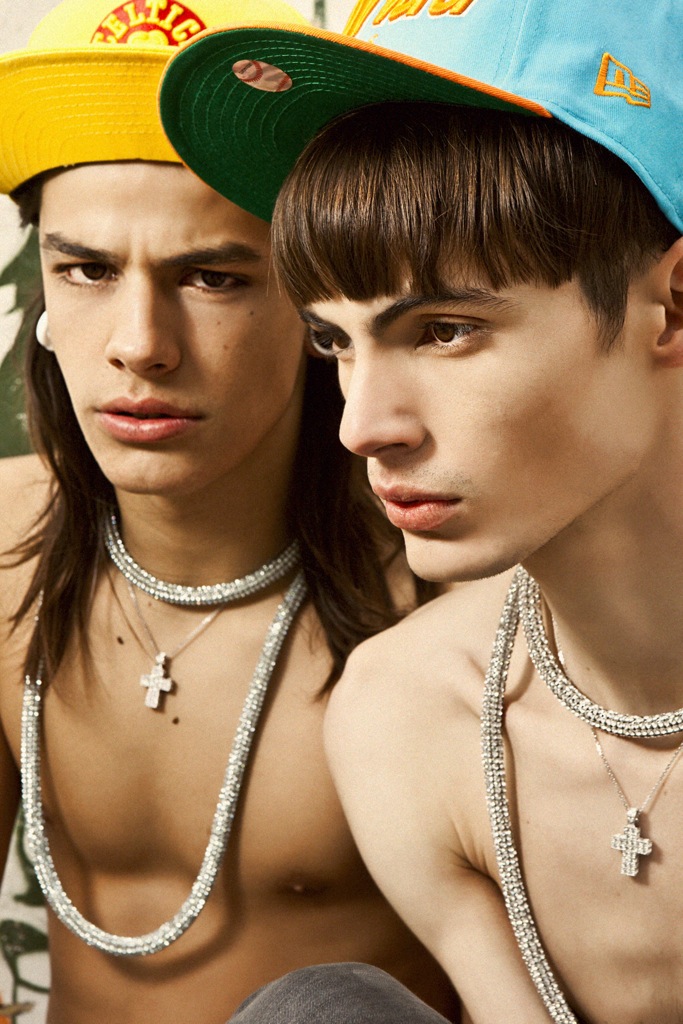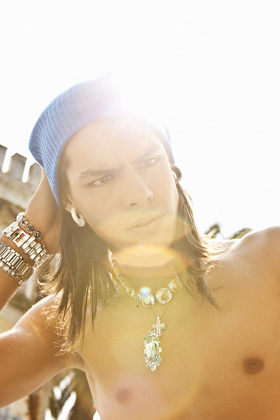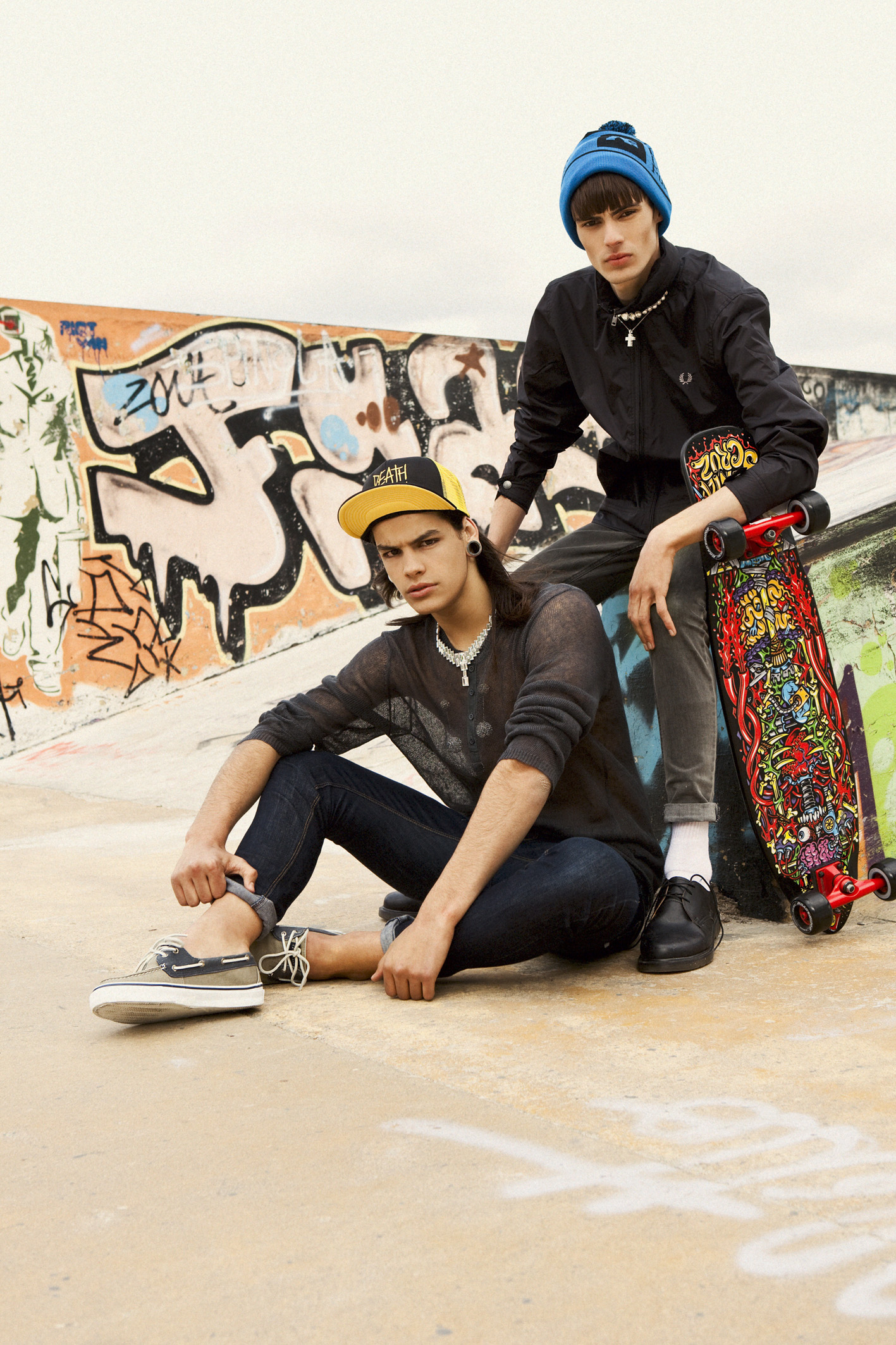 Lords of Dogtown–Embracing a west coast attitude, Elite Lisbon models Francisco Soares and Vick star in Daily Bless magazine’s latest editorial, “Skater Rules,” directed by photographer Ana Luisa Silva. Pairing Swarovski jewelry with street labels such as Wesc, Sperry, and Doc Martens, stylist Tiago Ferreira redefines casual cool with the skater boys. / Grooming by Andre Neto Oliveira.