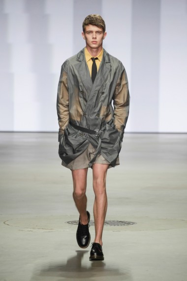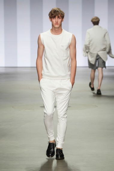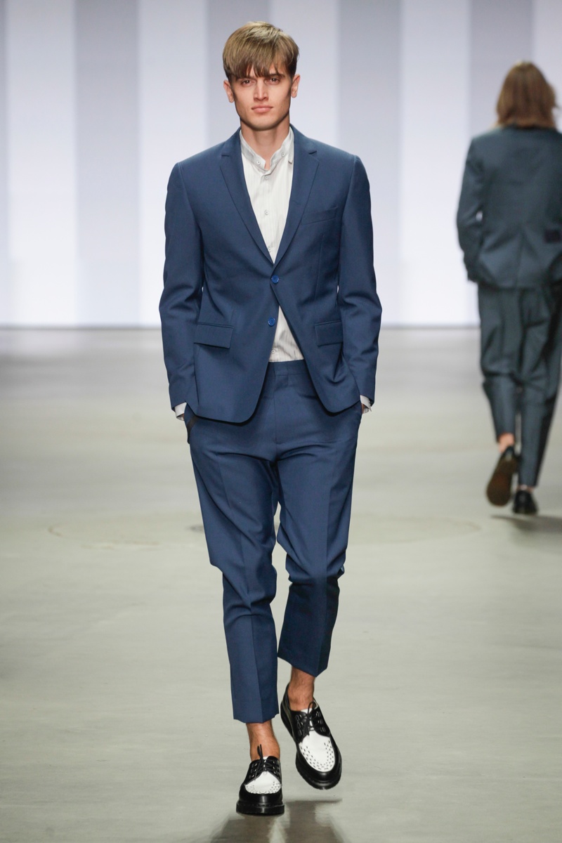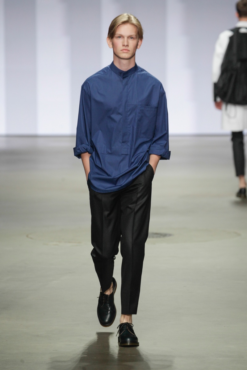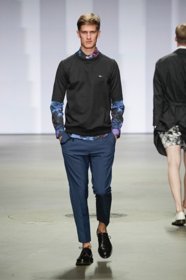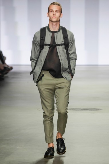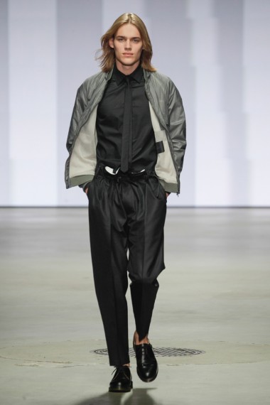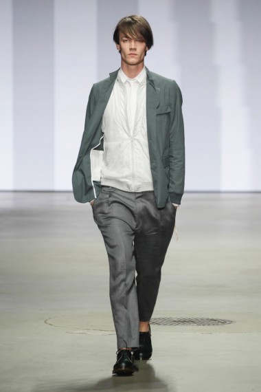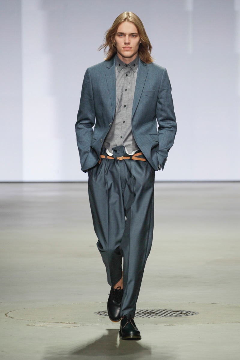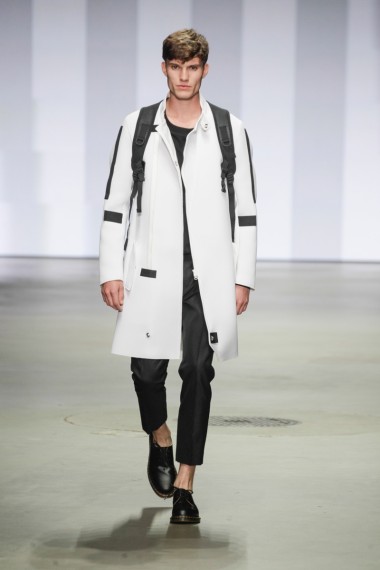 Marlin–Designer Francisco Van Benthum looks to scuba diving and the world of the deep-sea for the inspiration of his spring/summer 2014 collection. Blending contemporary menswear ideas with aspects of diving, the wet suit plays muse to the incorporation of high-performance materials while inhabitants of the sea are translated into refined shapes and prints. Embracing a color palette of black and white, accented by blue, green and gray, an element of the collection taps into transformation with overcoats featuring sleeves that with the slip of a button can be fitted or loose. Meanwhile, nylon and neoprene offer a sporty edge at the tailored hand of van Benthum.