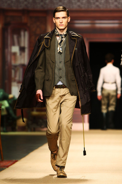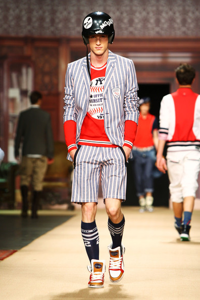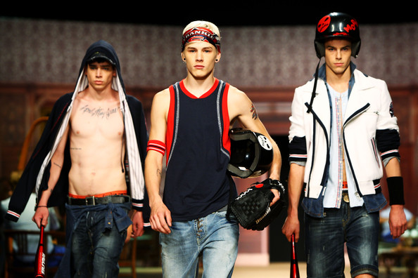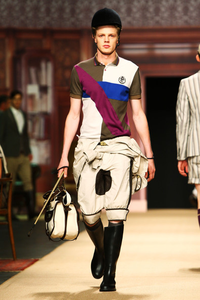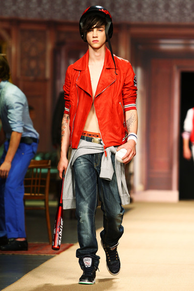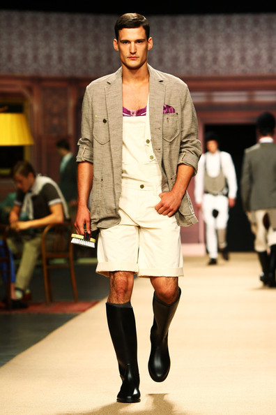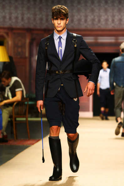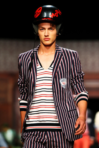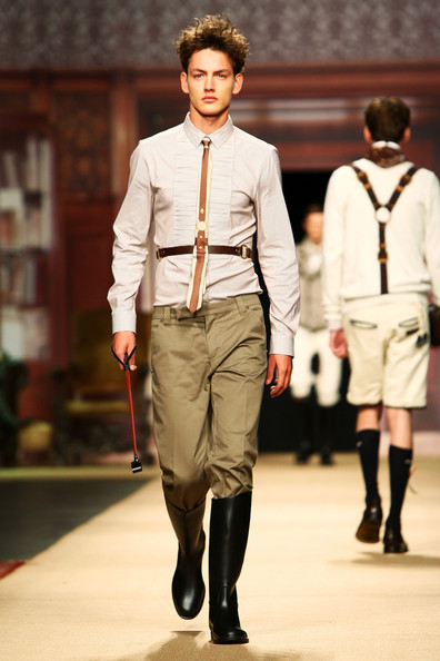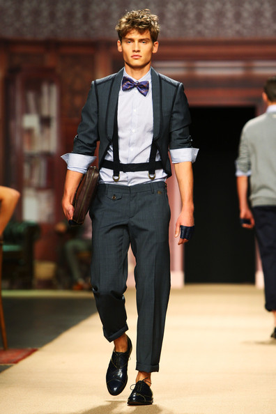 School is in session and your attendance is mandatory. After a brief departure in another style direction, Frankie Morello designers, Maurizio Modica and Pierfrancesco Gigliotti are back to their campy ways. Inspired by a scholarly atmosphere, the duo have turned out a collection of afterschool ensembles. For the sensative jock, faux rebel or strapping jockey, Frankie Morello has you covered. Straps keep blazers, knits and tops held fast, while riding boots are all the talk when not in oxfords or sneakers. Piping distinguishes several suiting looks, while shorts are cuffed and casual baggy denim is thrown in for good measure. Overall, Frankie Morello delivers with several interesting pieces, but they are too far and wide. Perhaps, they should revisit their fall collection where less camp and more function struck the perfect balance.