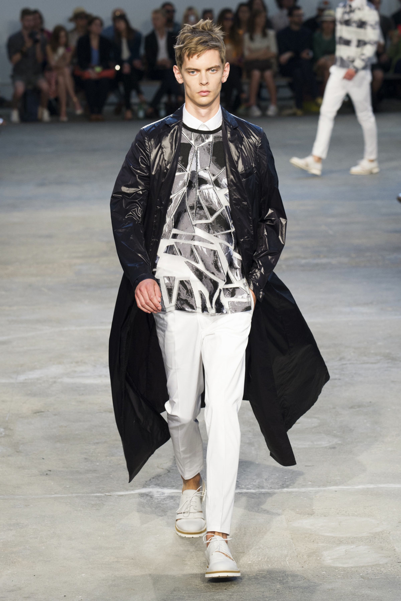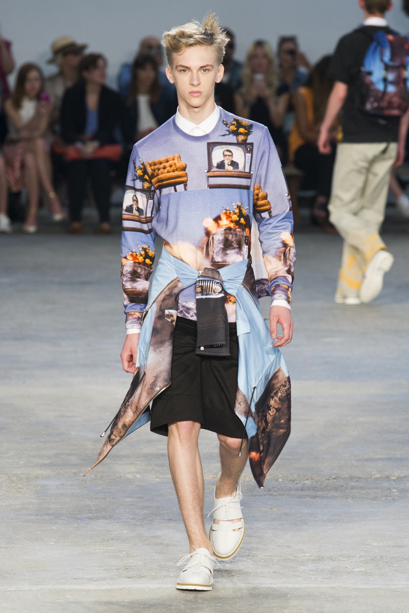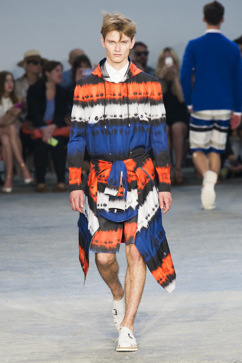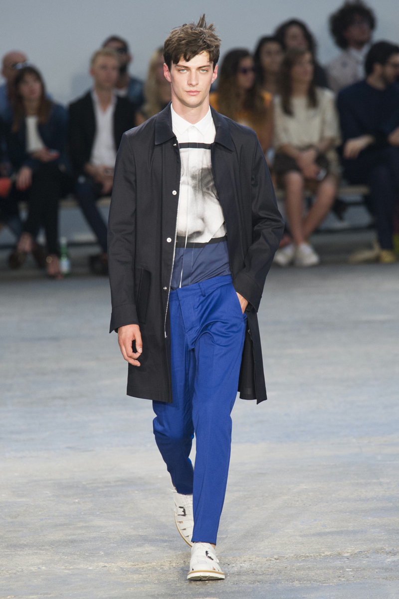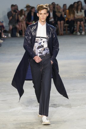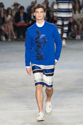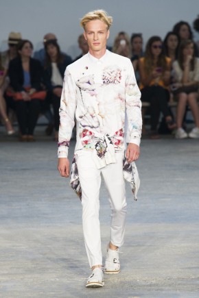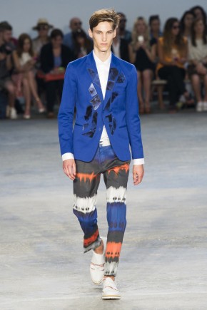 Frankie Morello Spring/Summer 2015–Art unveiled itself as an inspiration once more during Milan Fashion Week with the spring/summer 2015 collection of Frankie Morello. The fashion label used art as a vehicle to join the crusade of protest led by British designer Vivienne Westwood. Aiming to ‘Make Art Not War’, Frankie Morello used classic images and a strong mix of colors to dress a relaxed uniform that took its man from casual and sporty to refined with a bold fashion statement to make.