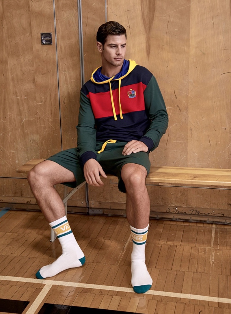 Franky Cammarata is the ultimate jock as he reunites with Simons for its fall-winter 2019 underwear and loungewear lookbook. Photographer Gregory Vaughan captures Franky for the occasion. Taking to the gym and locker room, Franky shows off a variety of underwear boxers and briefs. He wears Simons’ in-house brand LE 31, as well as go-to labels like Calvin Klein and Under Armour. The shoot also puts a spotlight on loungewear with garments from the likes of Champion.