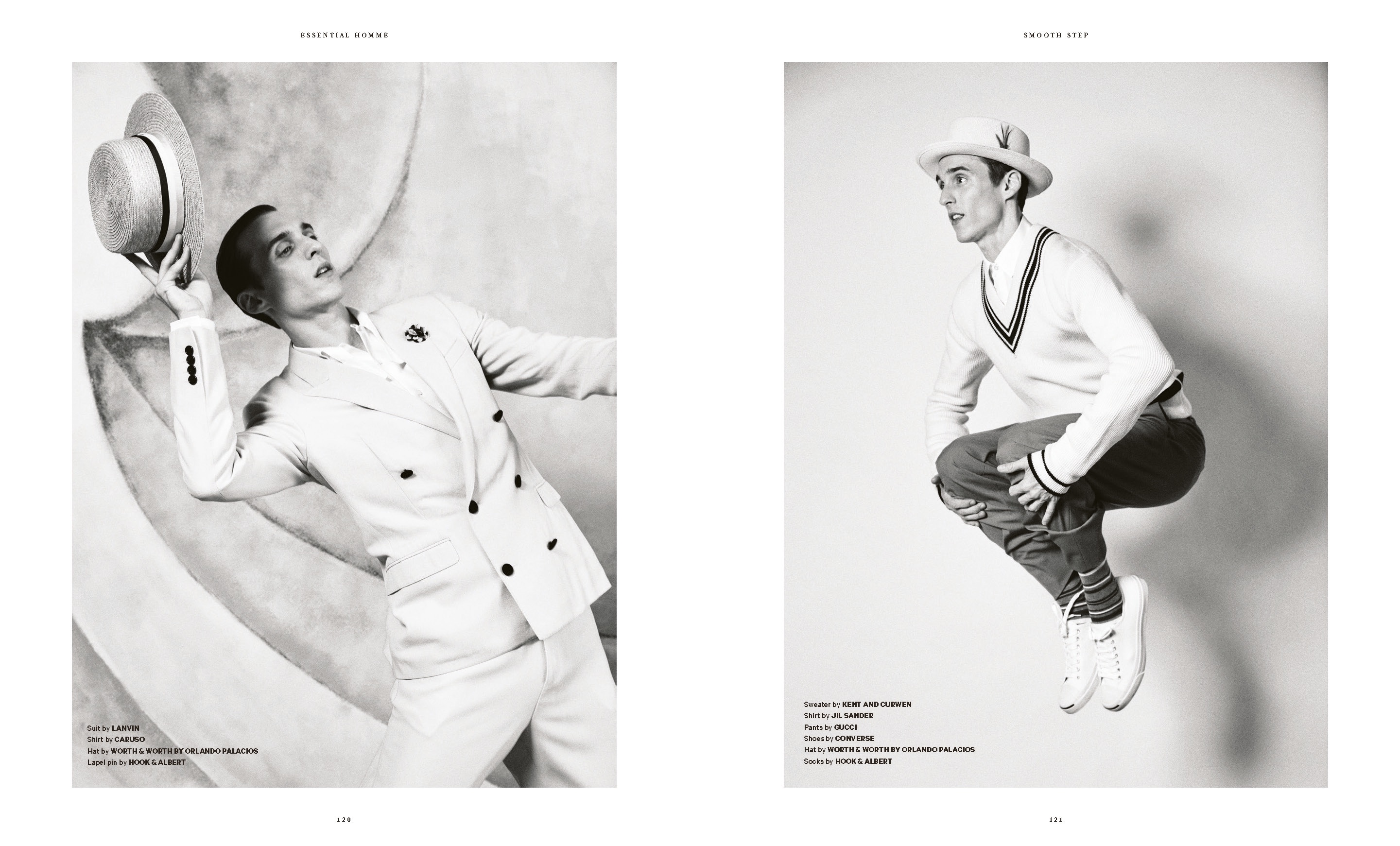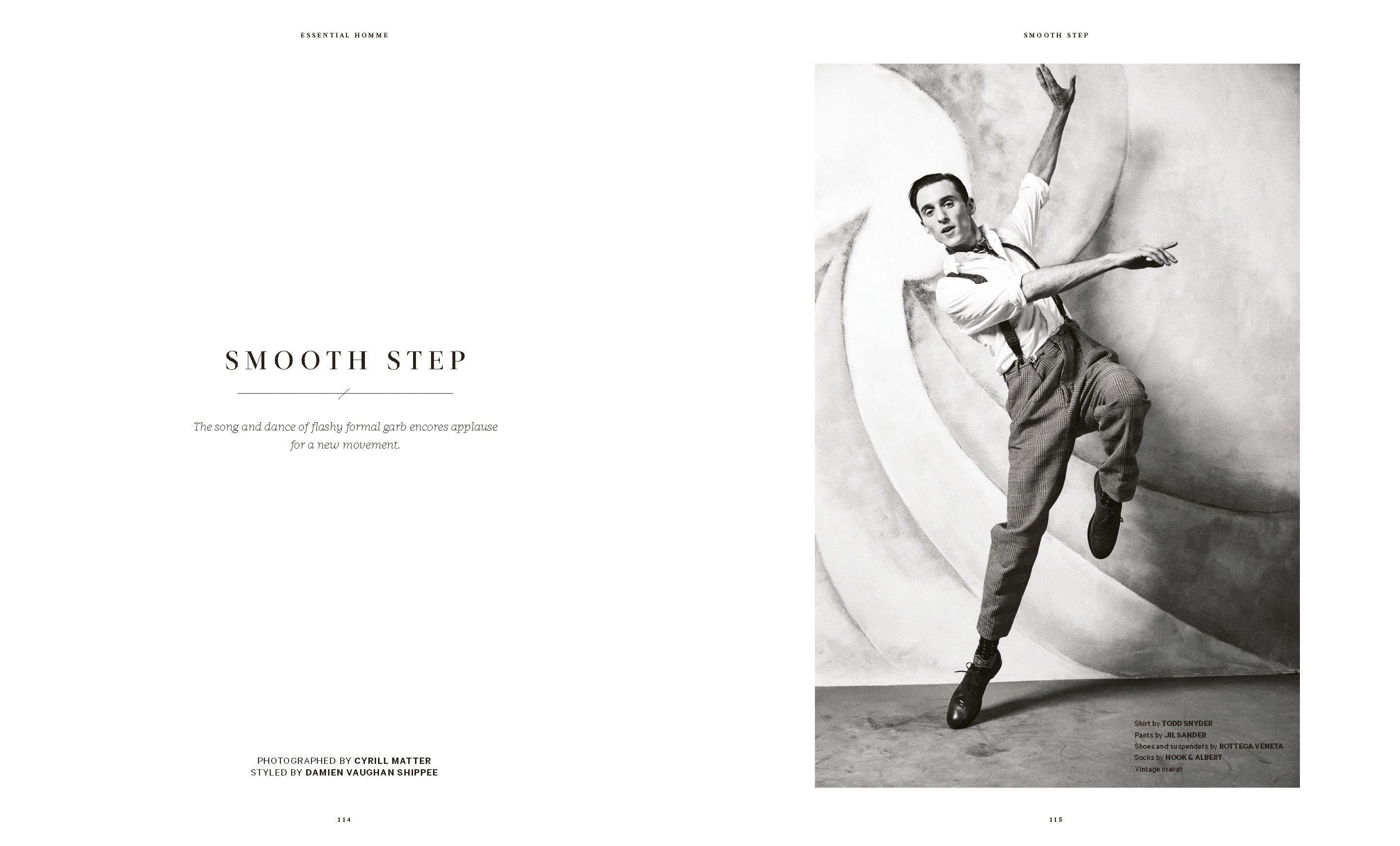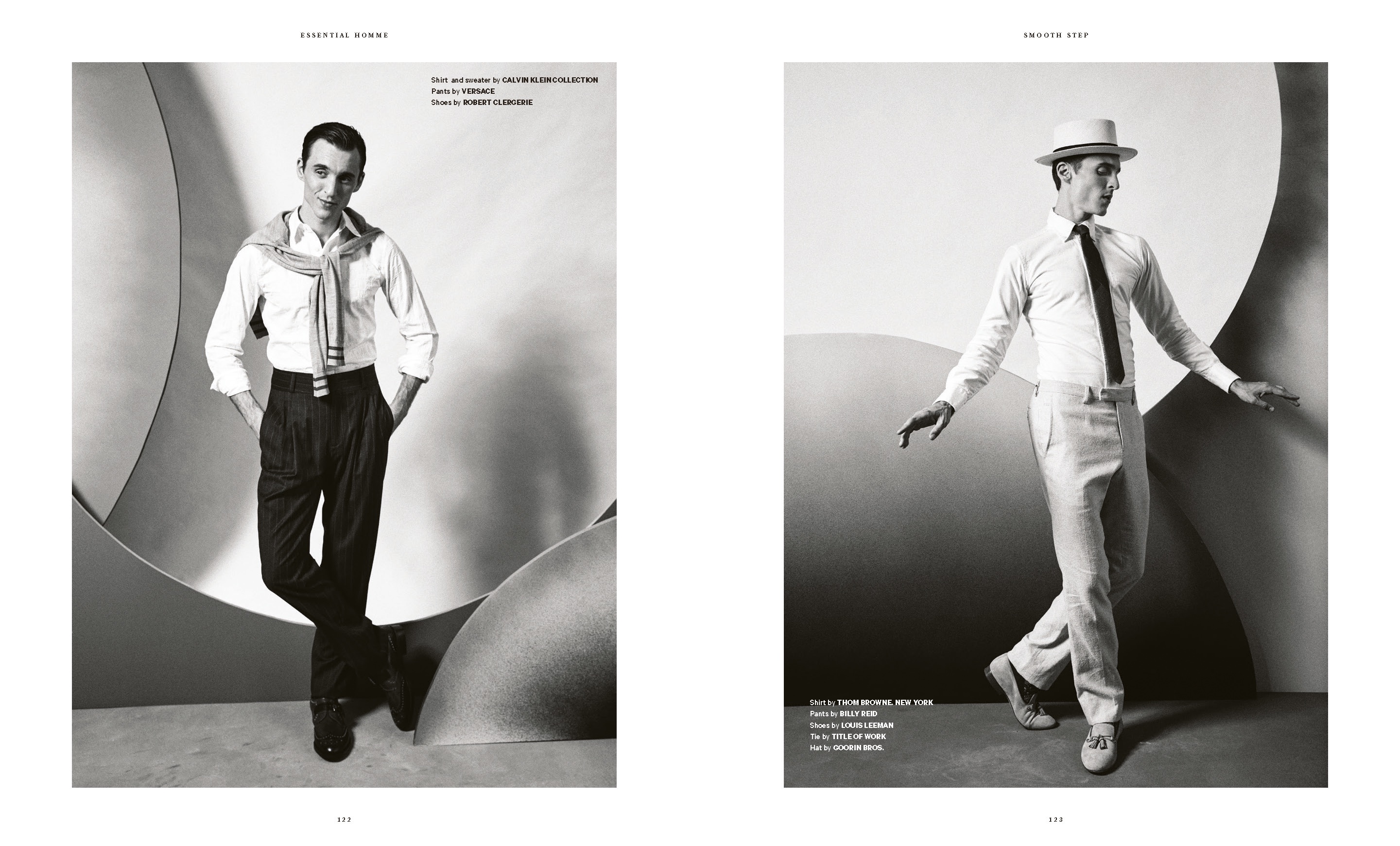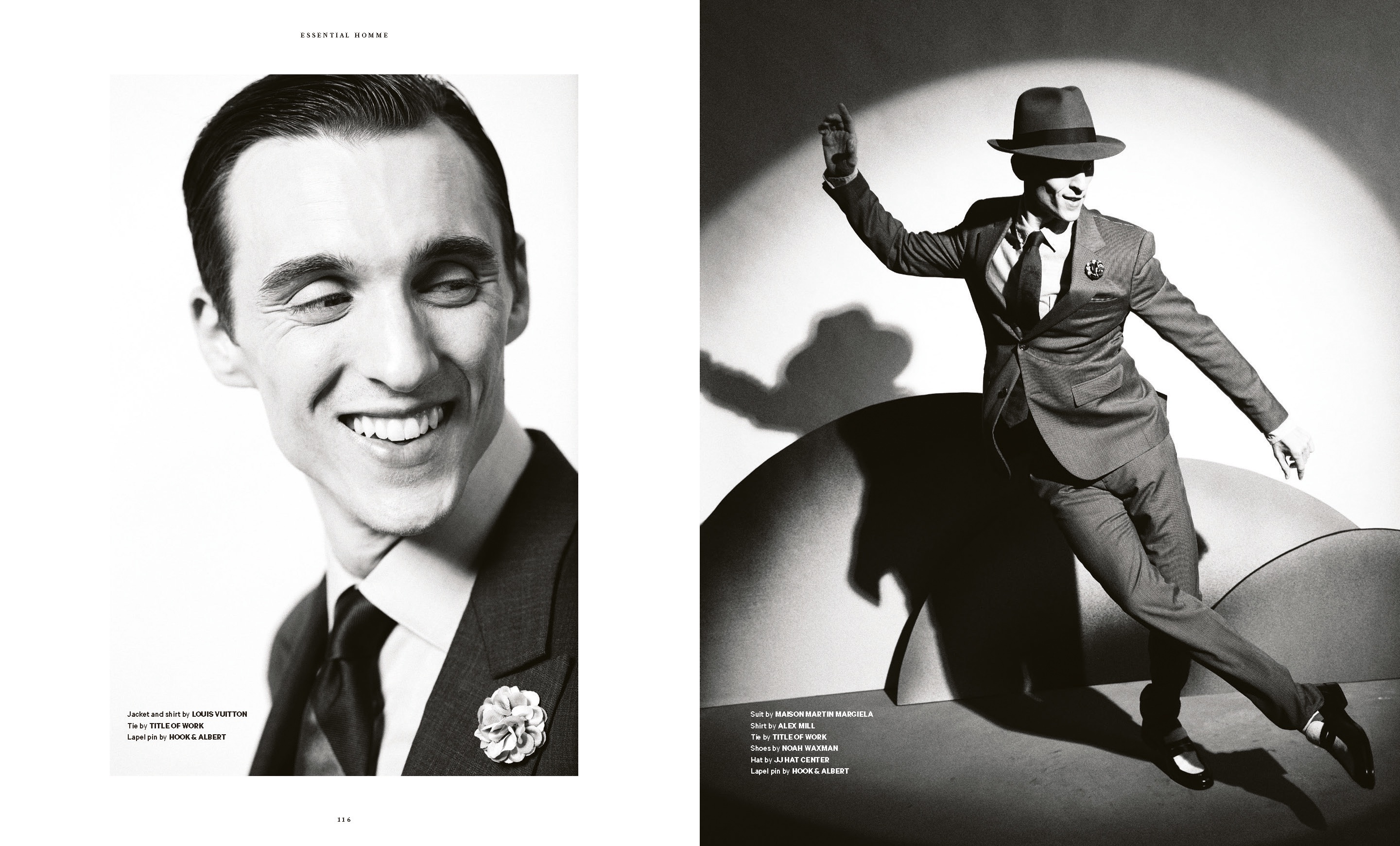 After dancing up a storm in Tom Ford’s disco themed Lady Gaga video, Fusion model Thomas Gibbons puts his background to work as he channels dance legend Fred Astaire. Connecting with photographer Cyrill Matter, Thomas charms in a black & white fashion editorial for the pages of Essential Homme. Dressed to impress, Thomas embraces a sartorial flair in fine suits from Maison Martin Margiela, Louis Vuitton and Bottega Veneta, among other fashion brands. Hitting impressive choreography, Thomas is styled by Damien Vaughan Shippee for the unforgettable outing.
