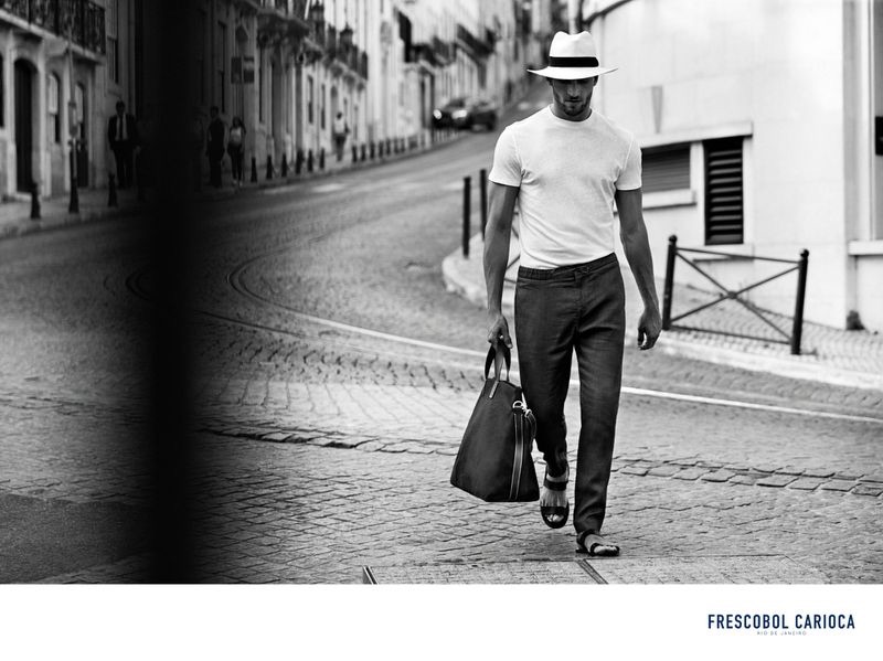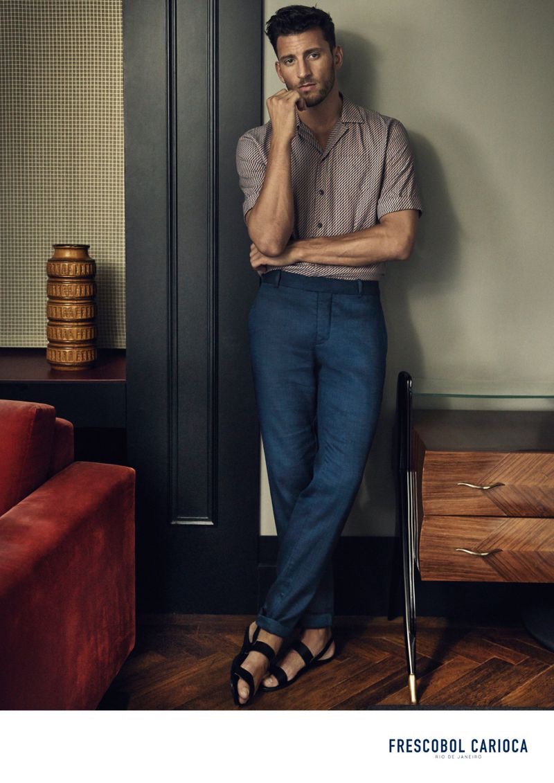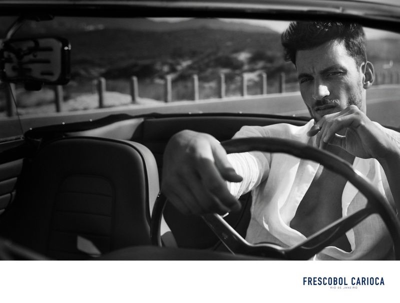Kevin Sampaio gives us summer envy with his latest campaign. The Portuguese model embraces relaxed vibes as he connects with Frescobol Carioca for its spring-summer 2019 campaign. The outing comes together with photography by Alex Bramall. Sporting the Brazilian brand’s latest fashions, Kevin is a laid-back vision. Getting behind the wheel of a convertible, Kevin hits the road. Alternating between the beach and a nice hotel, Kevin showcases Frescobol Carioca’s wardrobe for the season. Graphic prints shirts and swim shorts come together with plenty of smart staples like the linen top.
