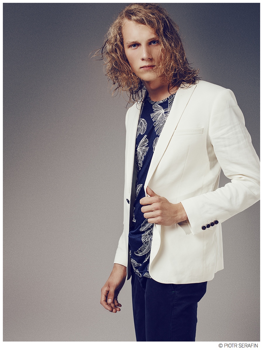 Shooting Victor-Embassy Models fresh face Victor Gwardzik is the latest talent to cross paths with fashion photographer Piotr Serafin. Posing for stripped down beauty images in his underwear or dressing up in a tailored white blazer or hanging out in an on-trend printed jacket, Victor delivers wonderful angles and we can’t wait to see more.