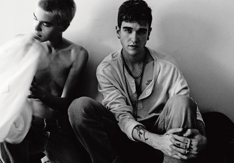 Gabriel-Kane Day-Lewis links up with fellow model Kris Gottschalk for a new black & white shoot. Featured in the most recent issue of Italian magazine L’Uomo Vogue, the editorial was lensed by fashion photographer Daniel Jackson. Wearing fall-winter 2015 fashions and embracing a brooding mood, Gabriel was styled by Michael Philouze for the relaxed outing.