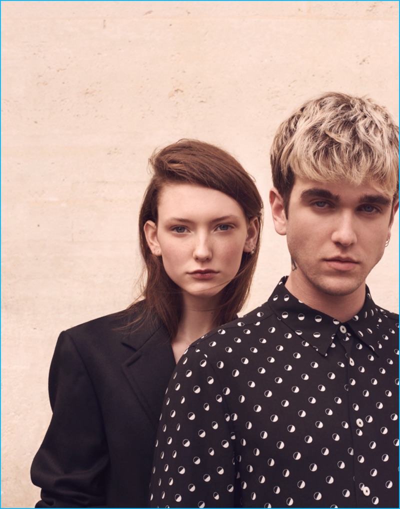 Joining Allyson Chalmers, model Gabriel-Kane Day-Lewis wears a PS Paul Smith bomber jacket with Louis Vuitton fashions.Pin