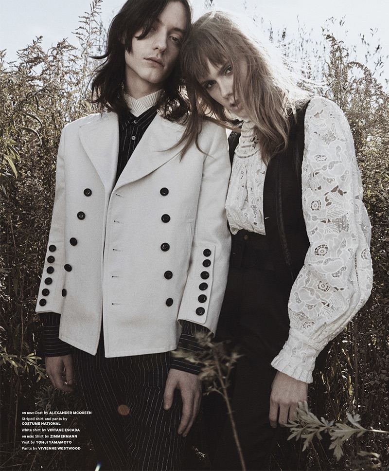 Gabriel Marques is a noble vision as he stars in an editorial for Essential Homme’s latest issue. Embracing an early spring calm, Gabriel joins forces with fellow model Kiki Willems. Photographed by Jack Waterlot (De Facto Inc.) with styling by Amy Mach, the pair head outdoors, where they are captured in a picture-perfect open field. Wearing fashions from Alexander McQueen, Lanvin, Walter Van Beirendonck and more, Gabriel embraces tailored ensembles with romantic details.