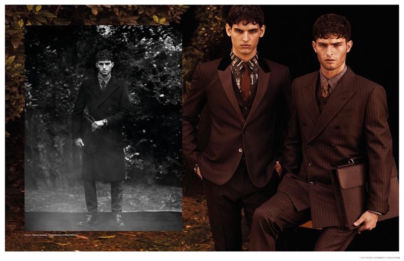 Game of Thrones–L’Officiel Hommes Singapore taps into the fun of Dolce & Gabbana’s fall-winter 2014 medieval inspired collection for a new spread in its latest issue. Sight Management models Paolo Anchisi, Misa Patinszki and Travis Cannata come together with photographer Alvaro Beamud Cortes for the intriguing fall outing. Offering a mix of casual and formal pieces, the models give their best serious impression.