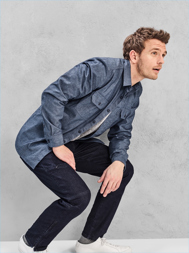 Gap revisits its classic denim with a new capsule collection. The American brand revisits its 1969 denim, fusing its signature styles with GapFit performance technology. Movement and comfort join timeless staples for the casual range. Model Benjamin Eidem is front and center for the outing. The Swedish model sports the collection’s denim worker shirt, jacket, slim utility pants, biker pants, and 5 pocket pants.