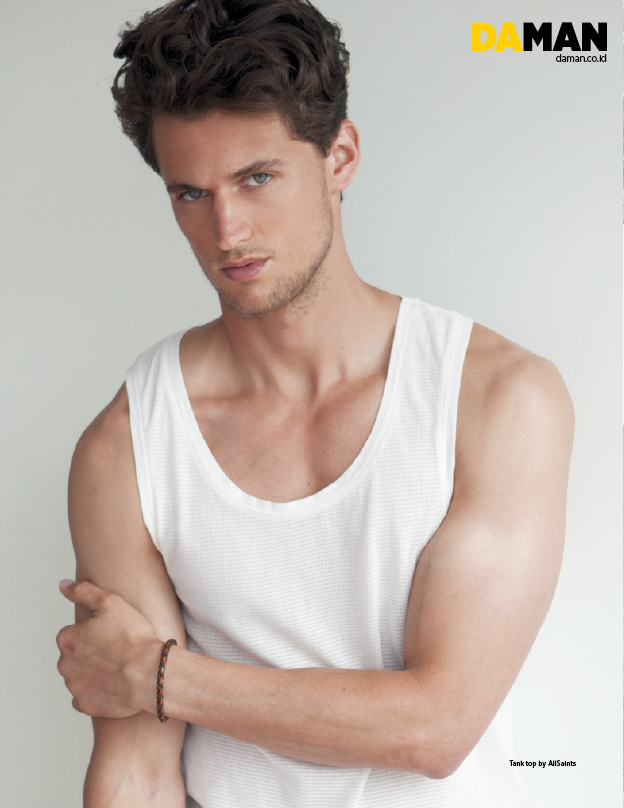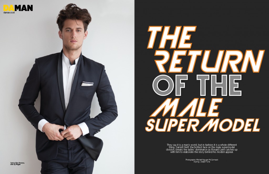 The Stunner–After posing for Da Man’s August/September cover, model Garrett Neff is back on our pages with the whole editorial that accompanies his appearance in the magazine. Captured by the lens of Mitchell Nguyen McCormack in a spread that celebrates Garrett as the ultimate male supermodel, the Delaware-born model is styled by Joseph Turla in glamorous pieces from the likes of Tom Ford and Dsquared², alternated by basic tank tops, swimwear pieces, or the already iconic Calvin Klein’s white briefs.