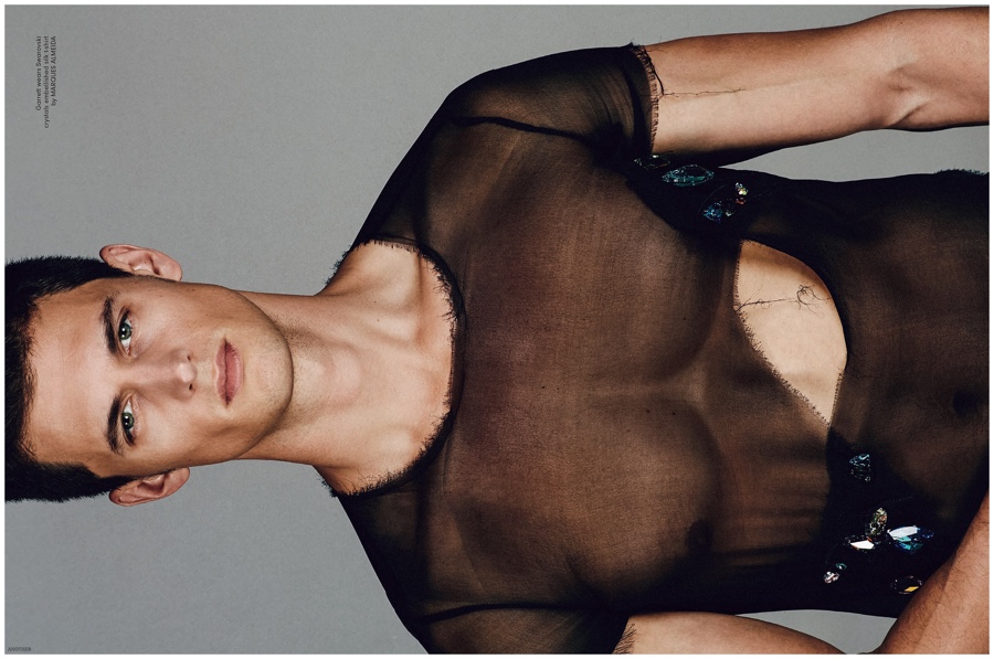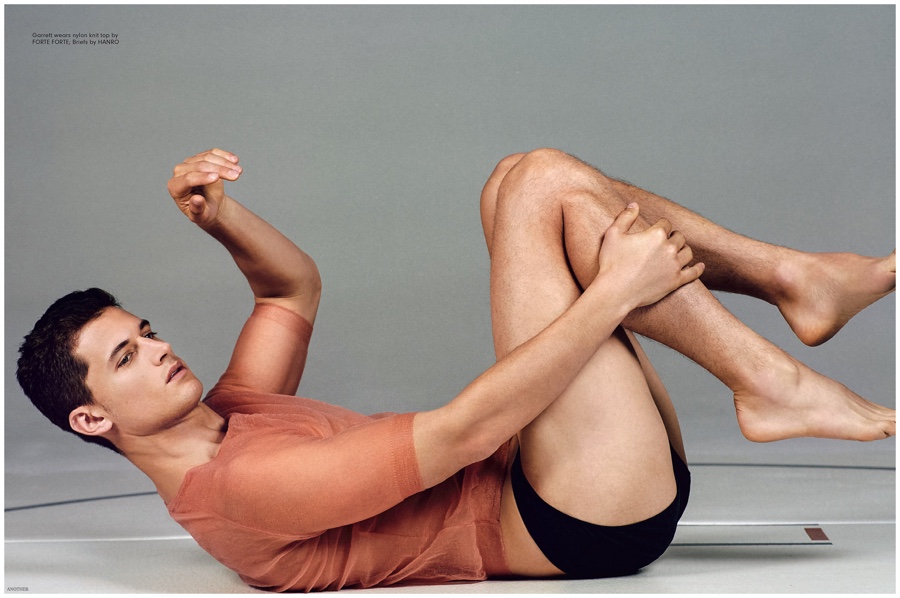Garrett Neff wears Hanro underwear with a nylon top from Forte Forte.Pin