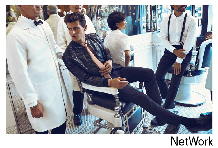 Network Fall/Winter 2014 Campaign-Taking a break from his Express duties, Garrett Neff connects with fashion photographer Koray Birand to star in the fall/winter 2014 advertising campaign of Network. Hitting up the barber, the American model charms in clean contemporary fashions. From fitted leather jackets to classic shirt and tie combinations, Garrett scores high style points with the aid of stylist Hafize Celikturk. / Hair by Felix Fischer. Makeup by Angie Parker. Production by PPR Istanbul.