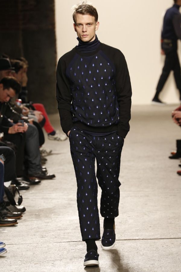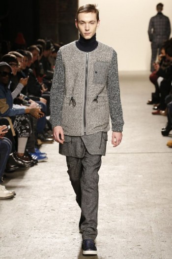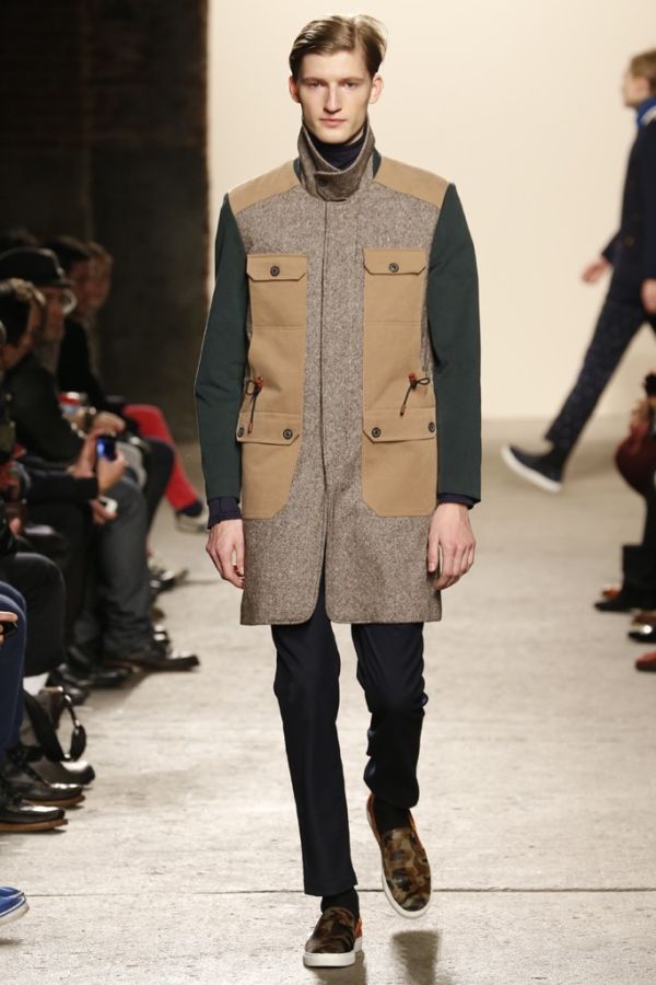 Style Journey–General Idea creative director Bamsuk Choi looks to Steve McCurry’s (The Path to Buddha ) A Tibetan Pilgrimage for the inspiration of the brand’s latest collection. Translating the intimate portraits of personal journeys into a nomadic collection, overlaid with color blocking, garments for the urban man easily come together. Delivering utilitarian details with innovative silhouettes, traced in green, navy and orange, General Idea creates a colorful presentation, juxtaposing boxy cuts with an interesting play on texture.