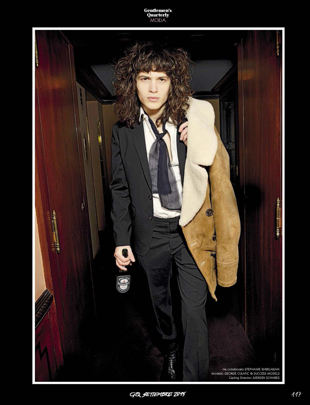 Following an editorial for Men’s Health Best Fashion, model George Culafic remains a rock-style inspiration. Appearing in the pages of GQ Italia’s September 2015 issue, George is photographed by Stéphane Feugère. Donning sharp, luxurious pieces from the fall-winter 2015 collections, George is styled by Robert Rabensteiner in standout fashions from Burberry Prorsum, Giorgio Armani, and Saint Laurent.